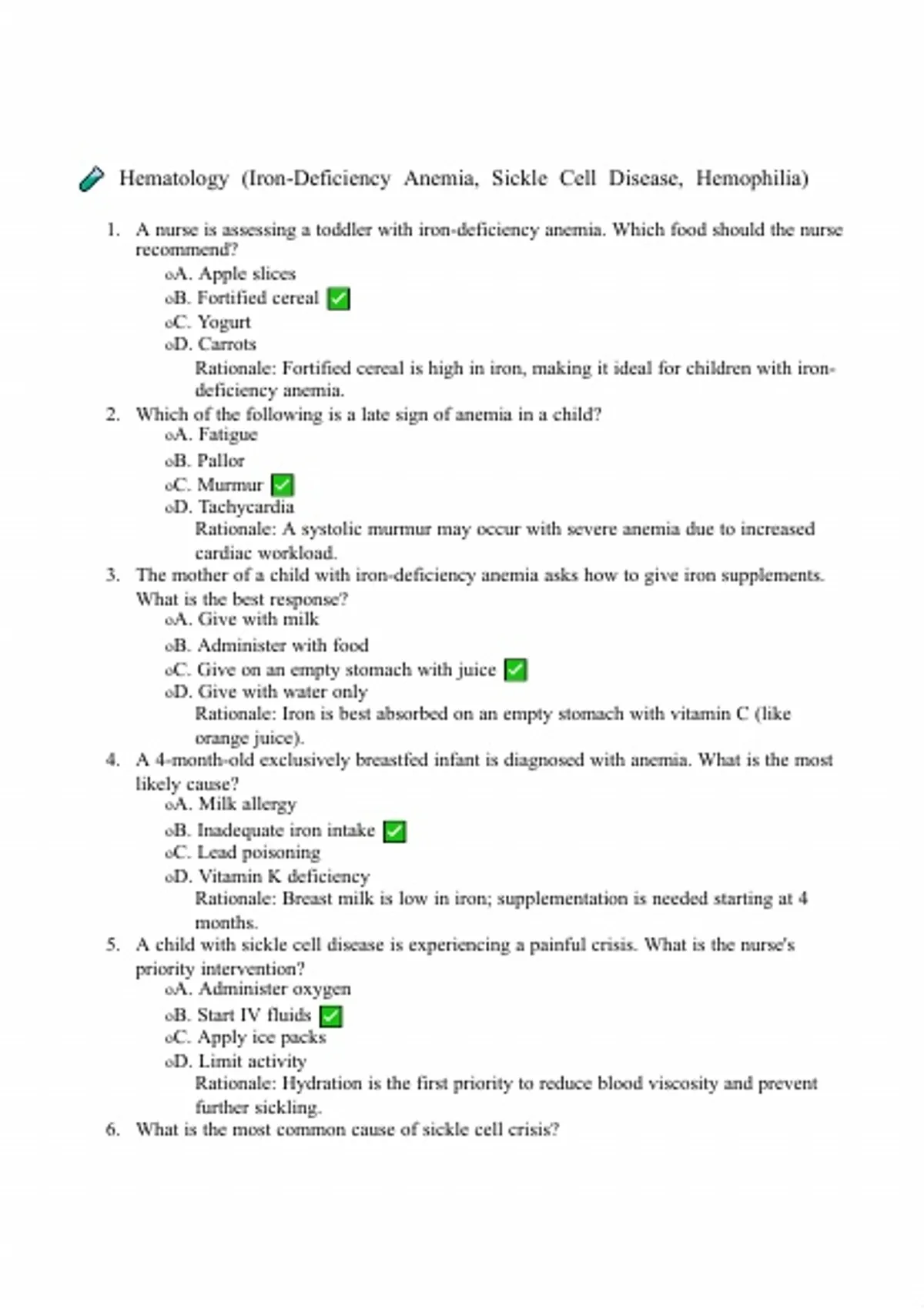 🧪 Hematology (Iron-Deficiency Anemia, Sickle Cell Disease, Hemophilia)