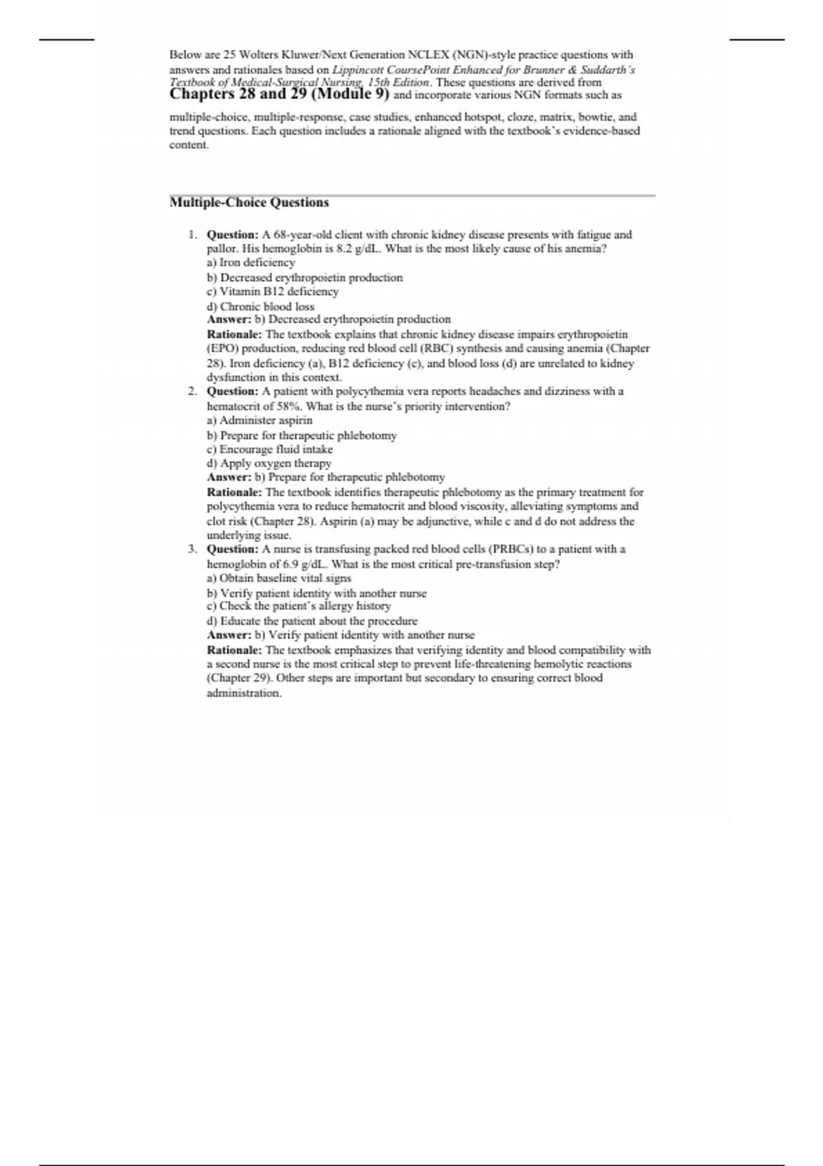 MDC 3 Mod 9 NCLEX Practice Questions with Rationales from Brunner TextMDC 3 Mod 9 NCLEX Practice Questions with Rationales from Brunner Text
