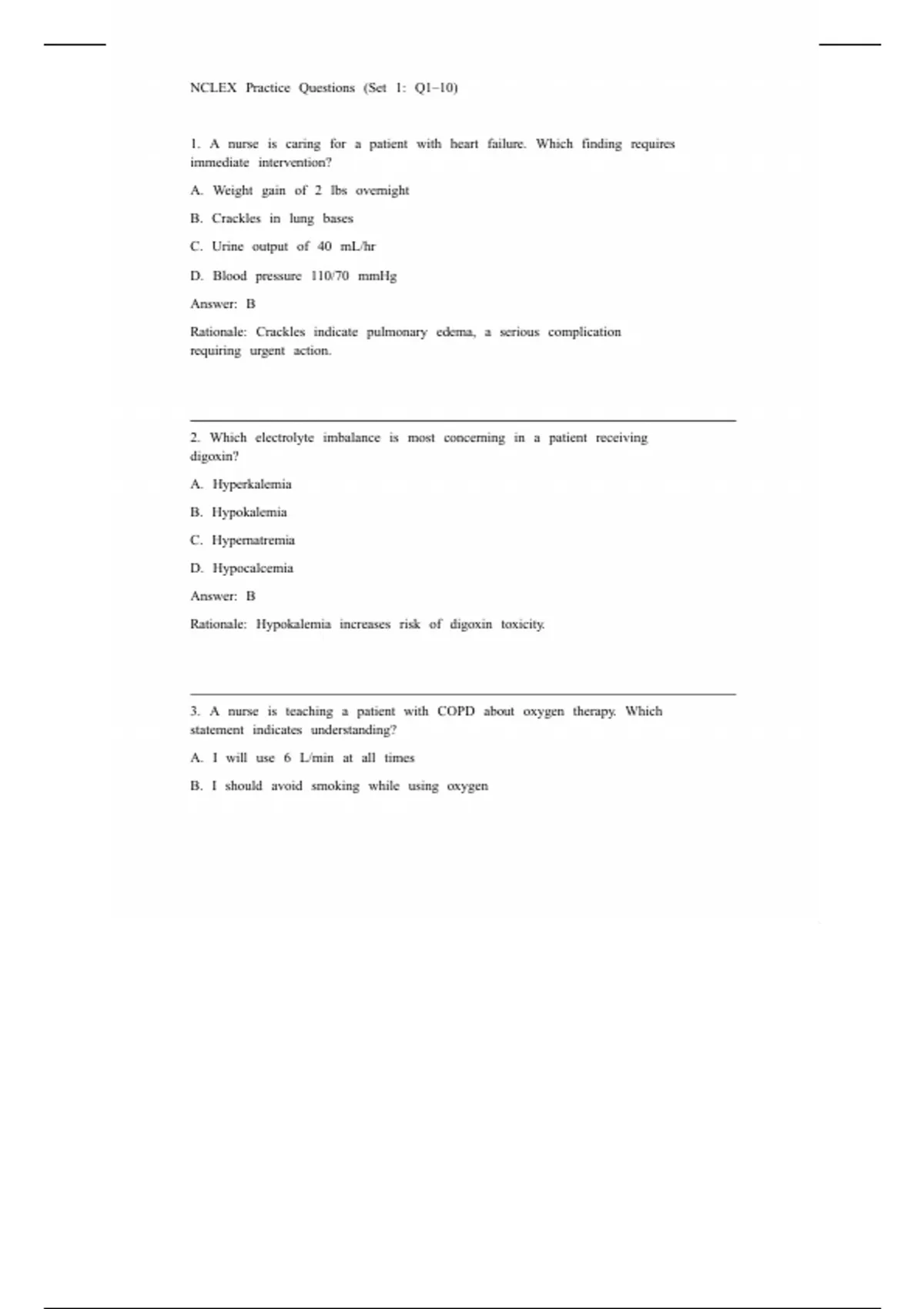 NCLEX Practice Questions for NUR 265 Exam 3 Study MaterialNCLEX Practice Questions for NUR 265 Exam 3 Study Material