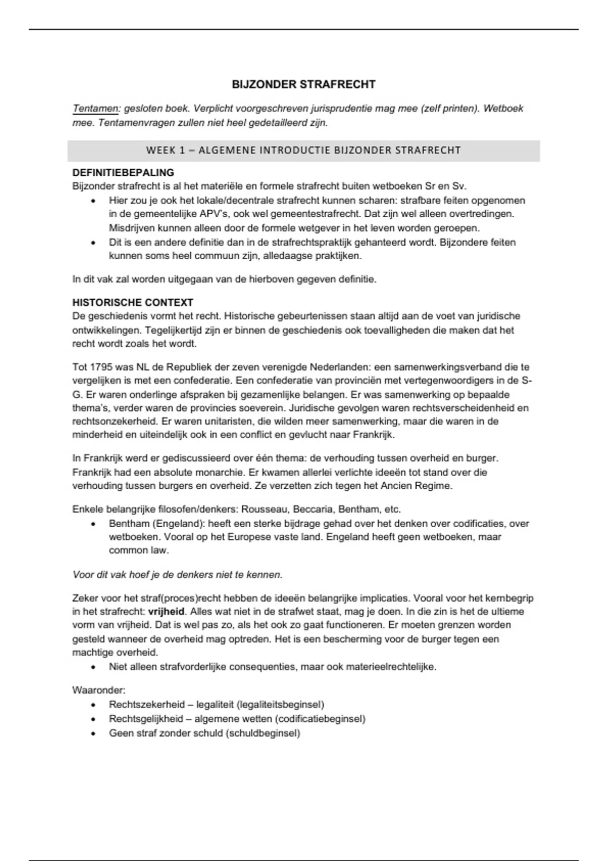 Dit document bevat uitgebreide aantekeningen van alle colleges en een samenvatting van alle voorgeschreven literatuur van het vak bijzonder strafrecht, master strafrecht radboud univesiteit jaar 2024/2025