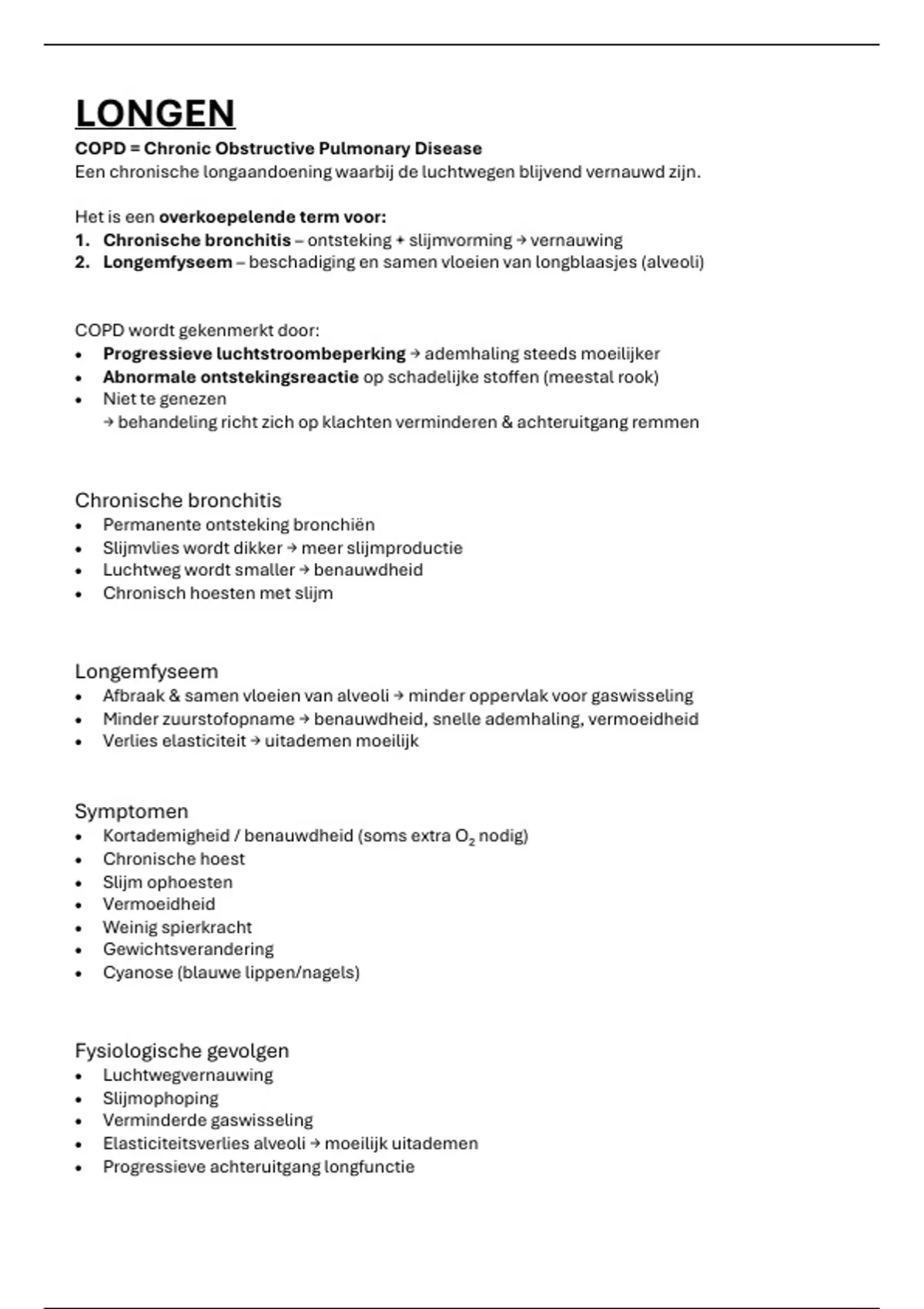 • Minder zuurstofopname → benauwdheid, snelle ademhaling, vermoeidheid