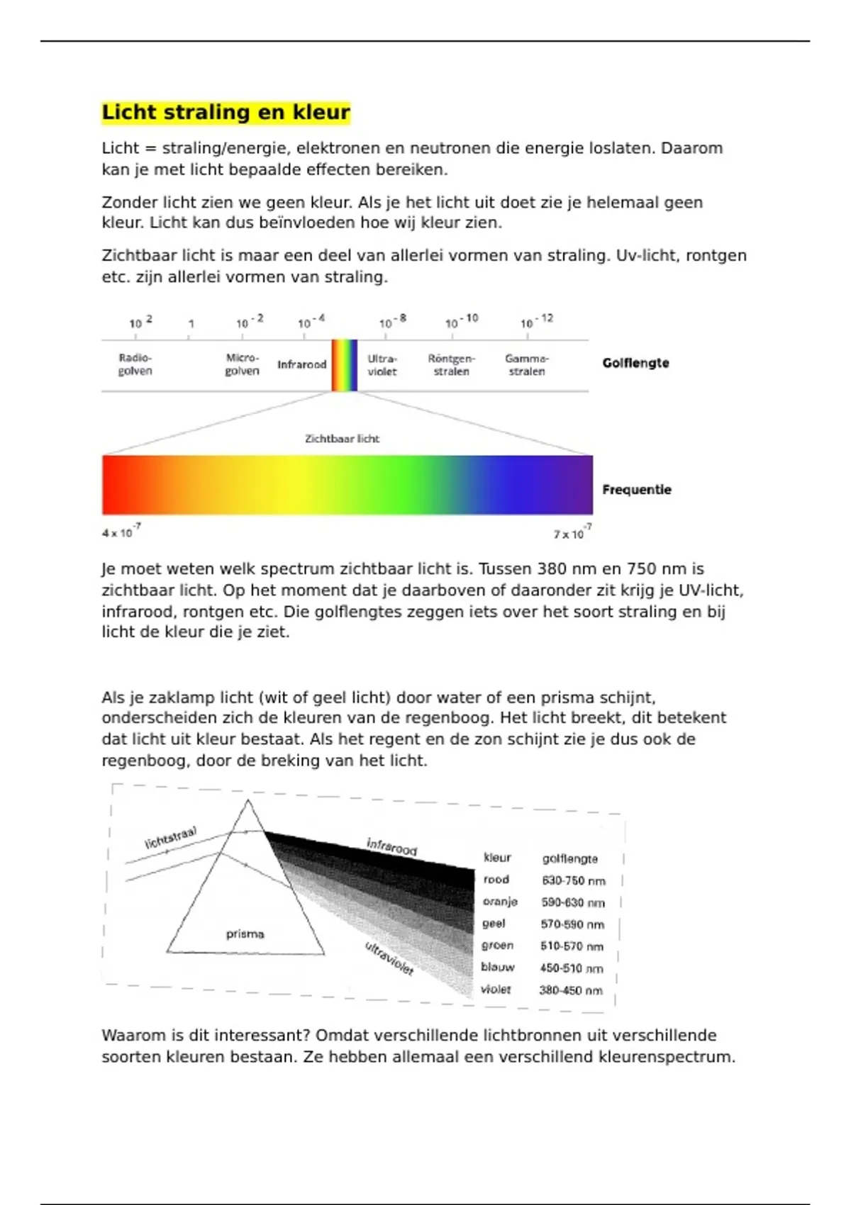 Deze samenvatting betreft informatie over het onderwerp licht, straling en kleur.