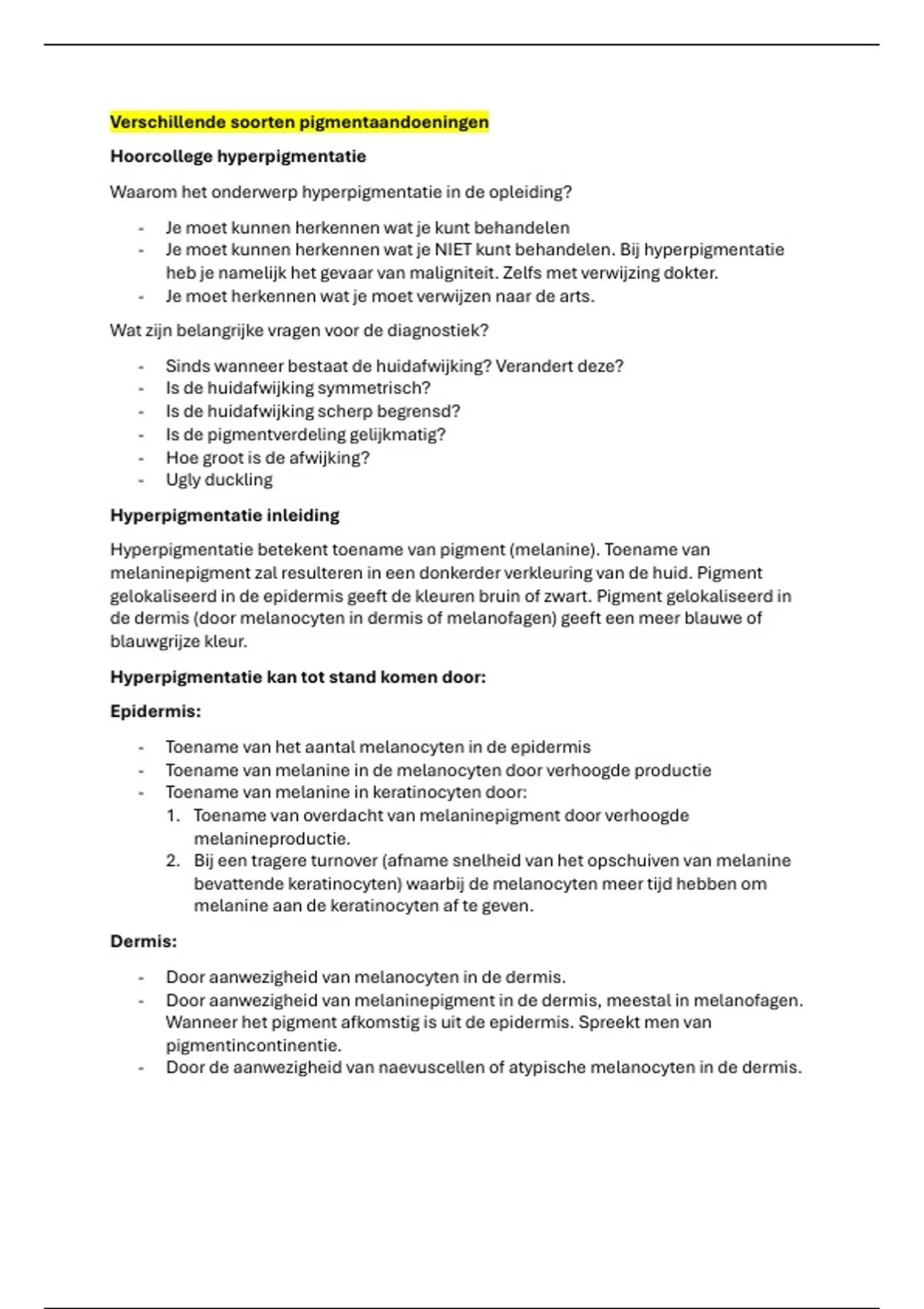 Hoorcollege hyperpigmentatie