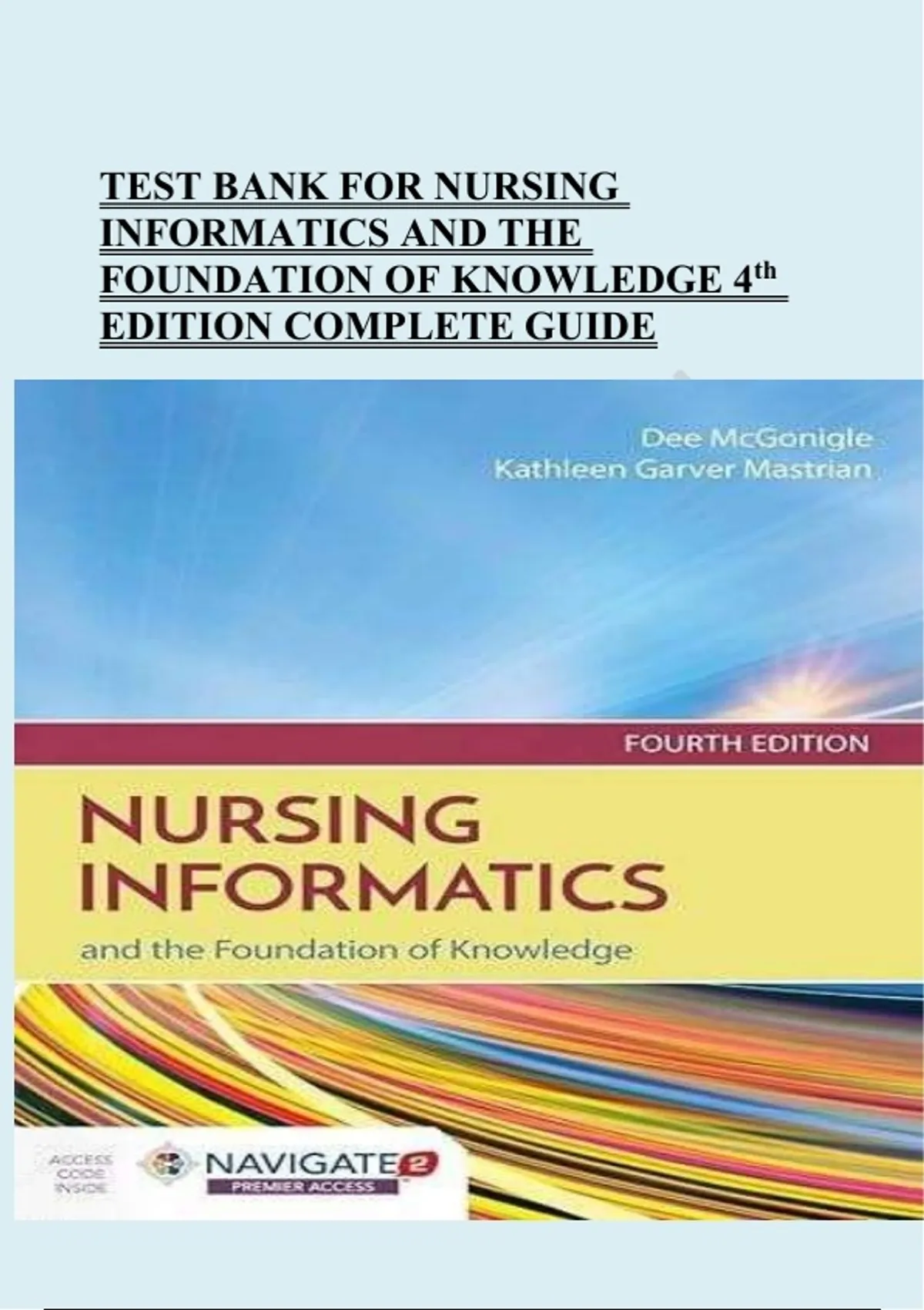 TEST BANK FOR NURSING INFORMATICS AND THE FOUNDATION OF KNOWLEDGE 4th EDITION COMPLETE GUIDE
