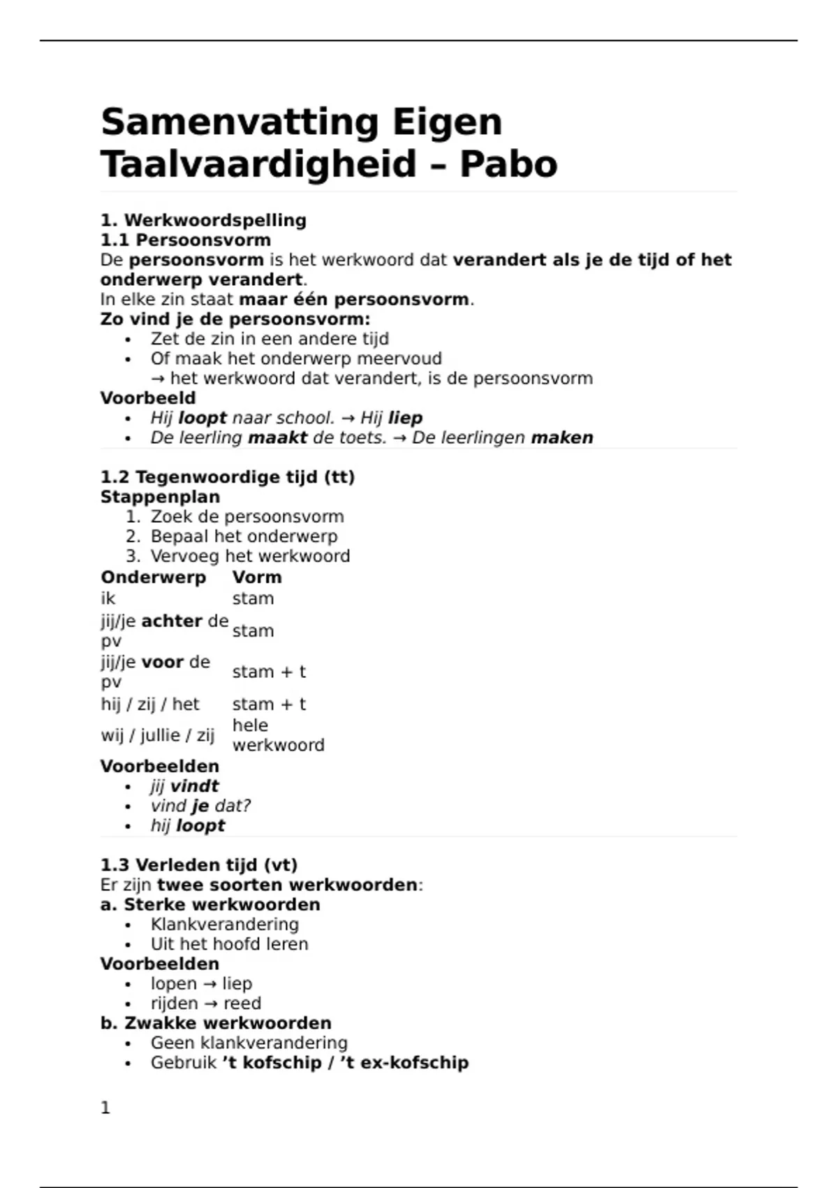 De persoonsvorm is het werkwoord dat verandert als je de tijd of het