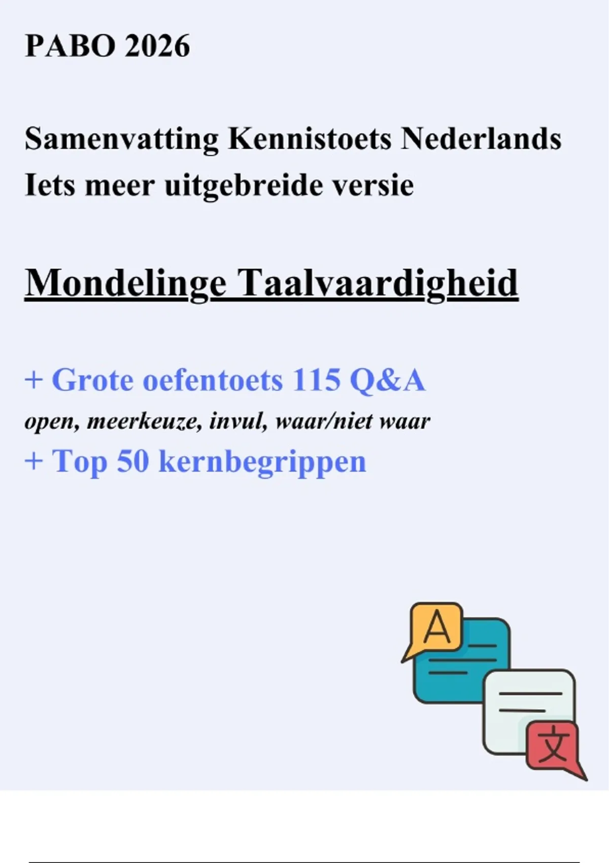 ,SAMENVATTING LANDELIJKE KENNISTOETS NEDERLANDS PABO 2026