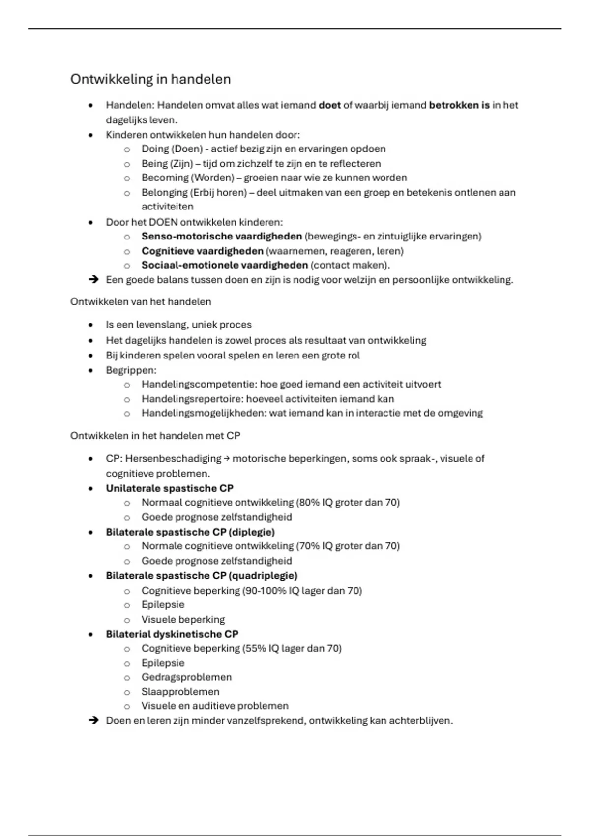 • CP: Hersenbeschadiging → motorische beperkingen, soms ook spraak-, visuele of