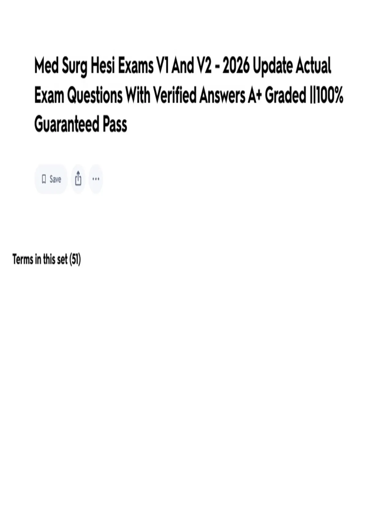 Med Surg Hesi Exams V1 And V2 - 2026 Update Actual Exam Questions With Verified Answers A+ Graded -100% Guaranteed Pass