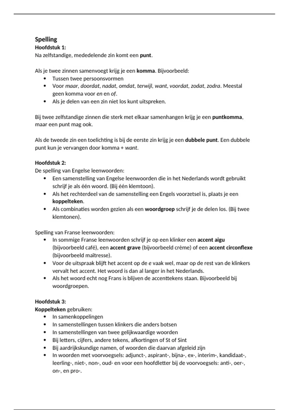 Samenvatting van de spelling hoofdstuk 1 t/m 6