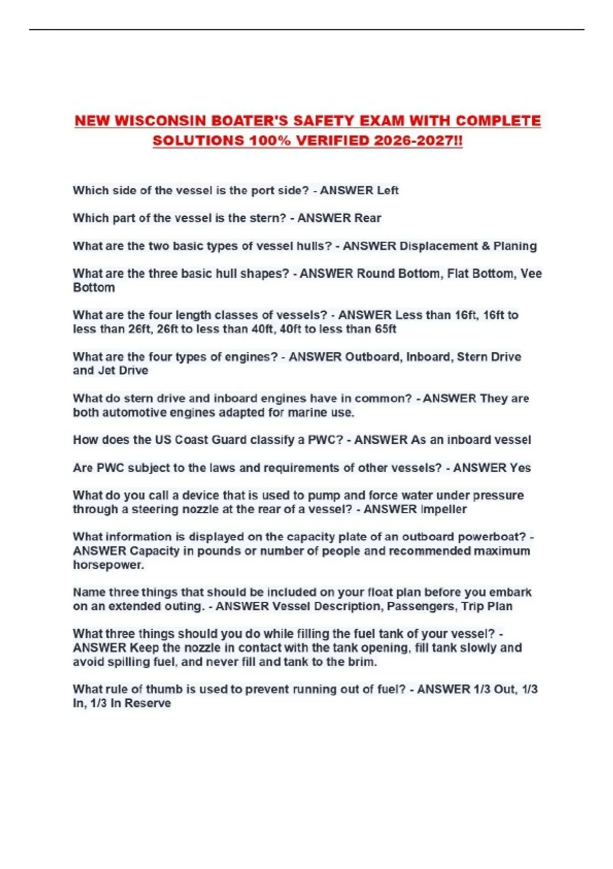 NEW WISCONSIN BOATER'S SAFETY EXAM WITH COMPLETE SOLUTIONS 100% VERIFIED !!...