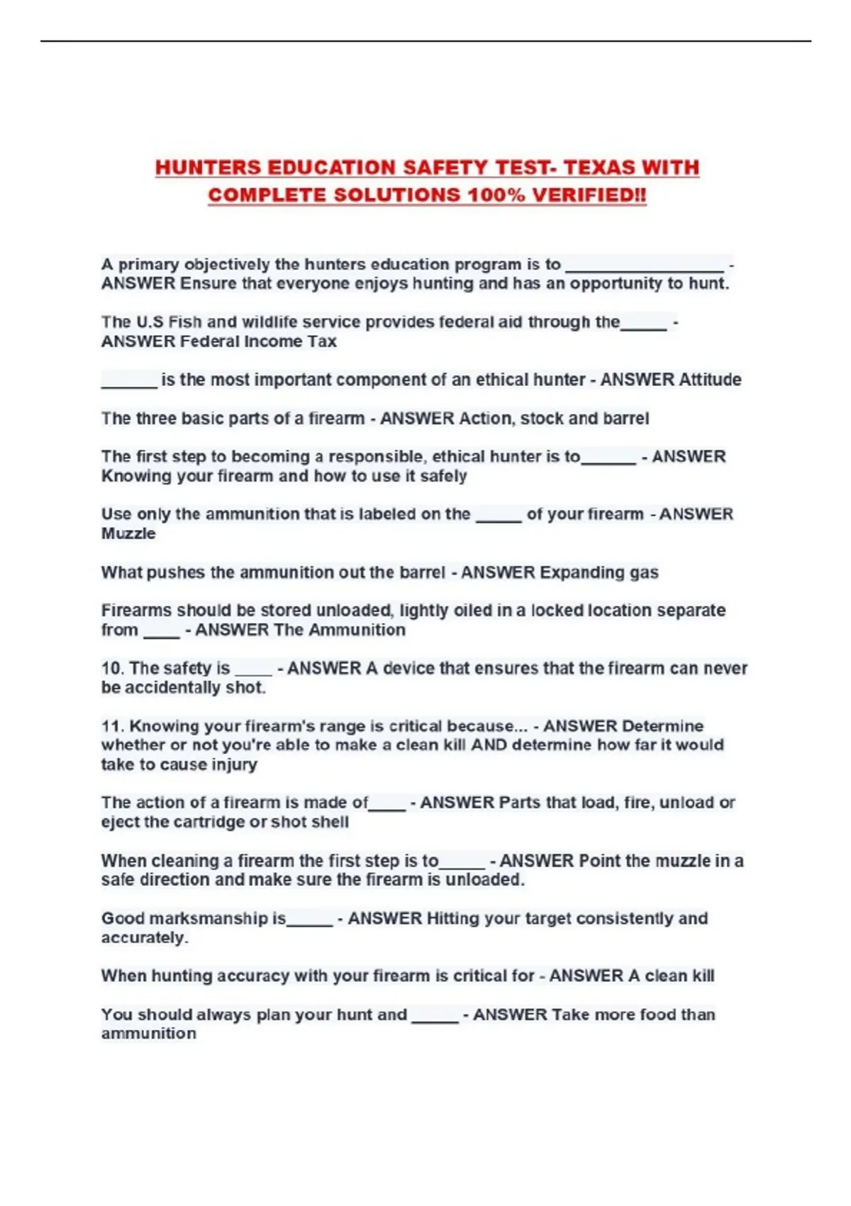HUNTERS EDUCATION SAFETY TEST- TEXAS WITH COMPLETE SOLUTIONS 100% VERIFIED!!...