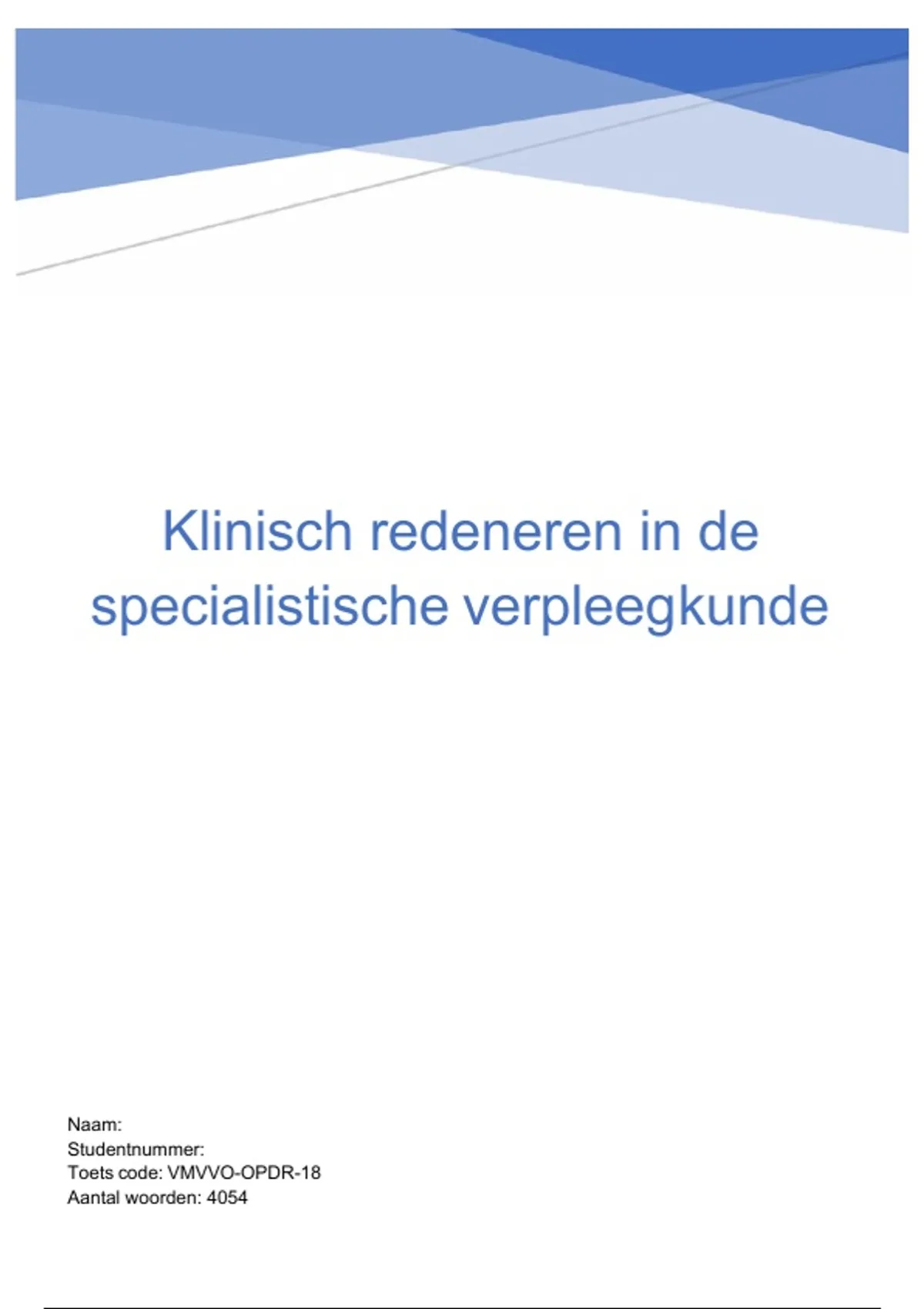 Voor de opdracht klinisch redeneren binnen de specialistische verpleegkundige zorg wordt