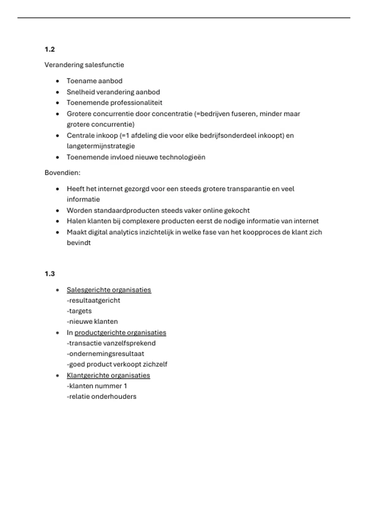 Deze samenvatting is bedoeld voor studenten HBO Commerciële Economie (jaar 1) en behandelt de volledige leerstof van het vak Active Learning Sales. Het document geeft een compleet en overzichtelijk beeld van sales, verkoopstrategieën en salesmanagement. Onderwerpen die aan bod komen zijn onder andere: de veranderende salesfunctie, klantgerichte organisaties, markt- en concurrentievormen, buyer journey en het STDC-model, DMU en het inkoopproces, salesstrategieën en -tactieken, salesplanning en SMART-doelstellingen, salesorganisatie (binnen- en buitendienst), prijsstrategieën, kostprijsberekeningen, break-evenanalyse, distributie en logistiek, communicatie- en beïnvloedingsmodellen (zoals AIDA en Cialdini), consumentengedrag en relatiemanagement. De samenvatting is geschikt om te leren voor tentamens, actief mee te werken tijdens colleges en te gebruiken bij praktijk- en salesopdrachten. Alles is uitgelegd in duidelijke taal en sluit goed aan bij het niveau van een eerstejaars HBO-student. De samenvatting is beknopt en zo minimaal mogelijk geschreven zonder dat dit leidt onder de kwaliteit van de inhoud.