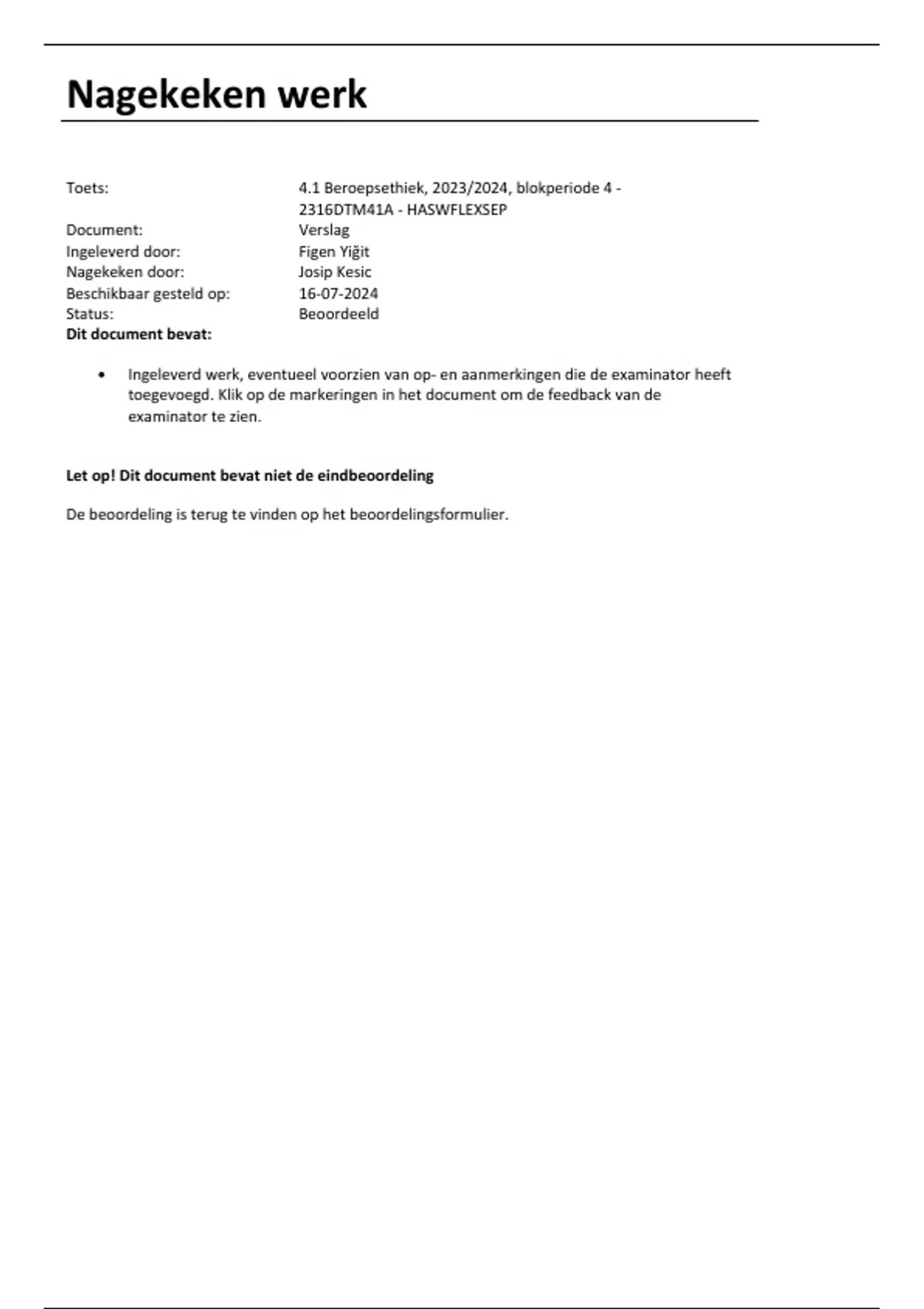 Toets: 4.1 Beroepsethiek, 2023/2024, blokperiode 4 -