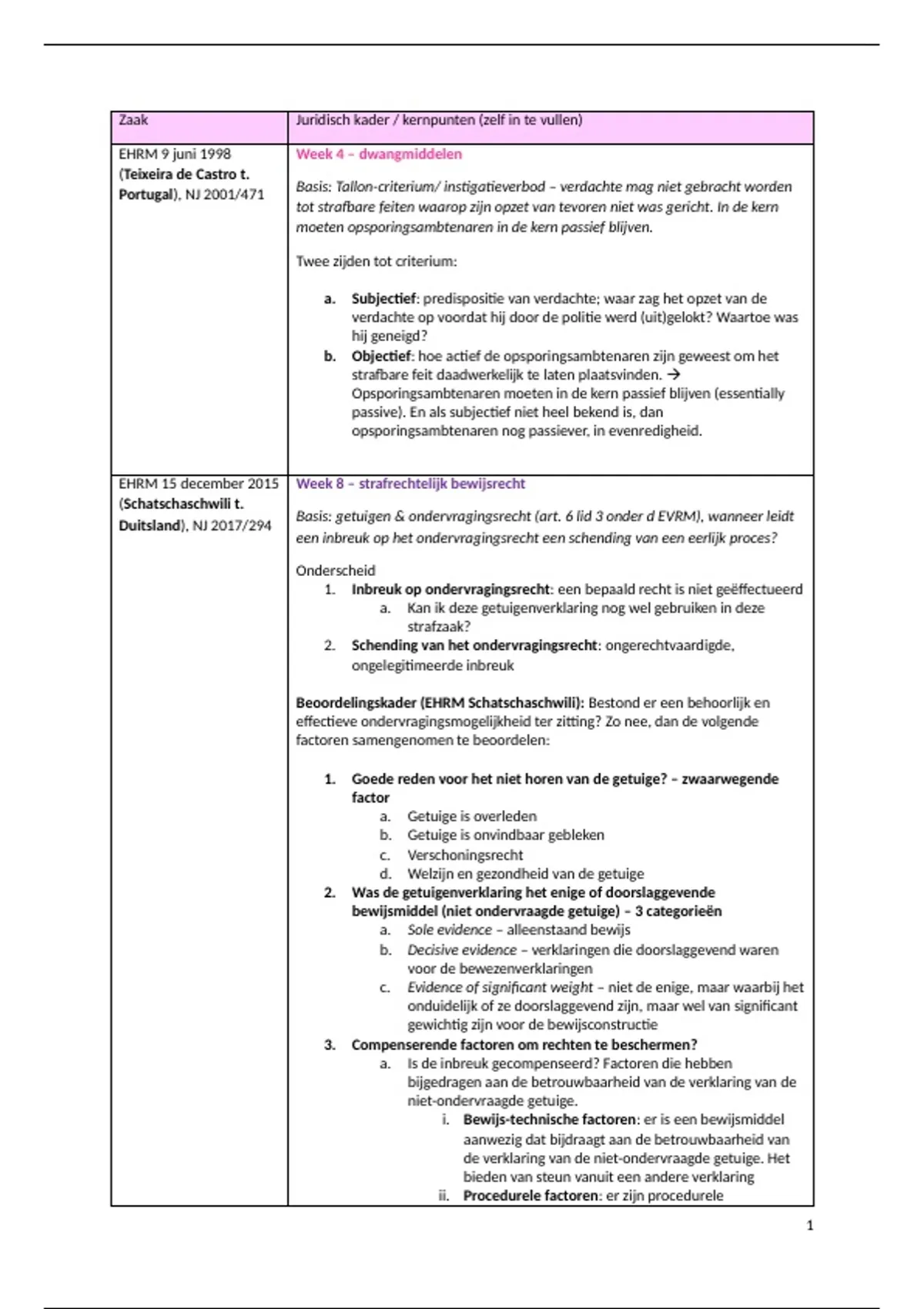 Alle hoorcolleges, werkgroepen, arresten en literatuur volledig behandeld!