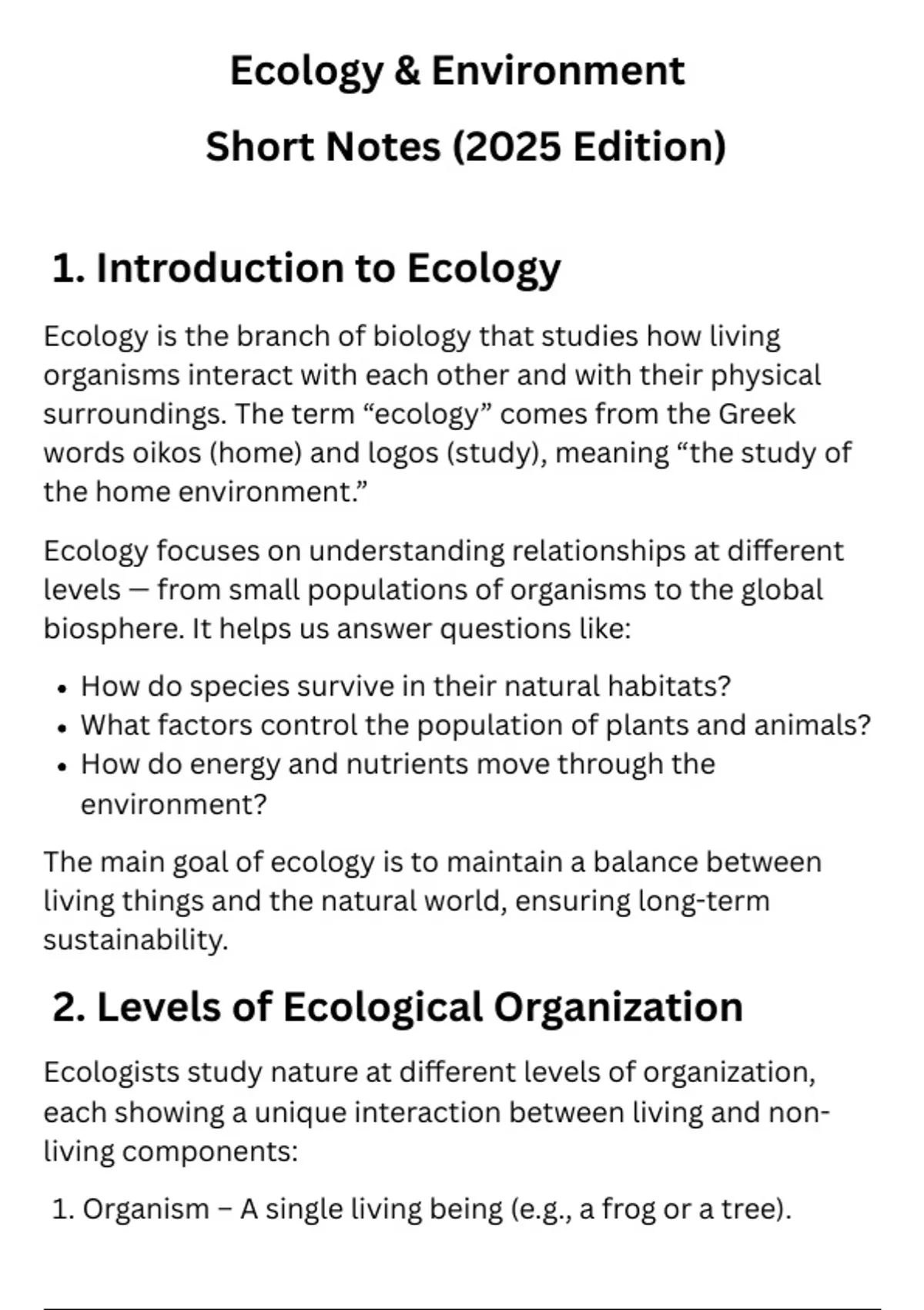 1. Introduction to Ecology