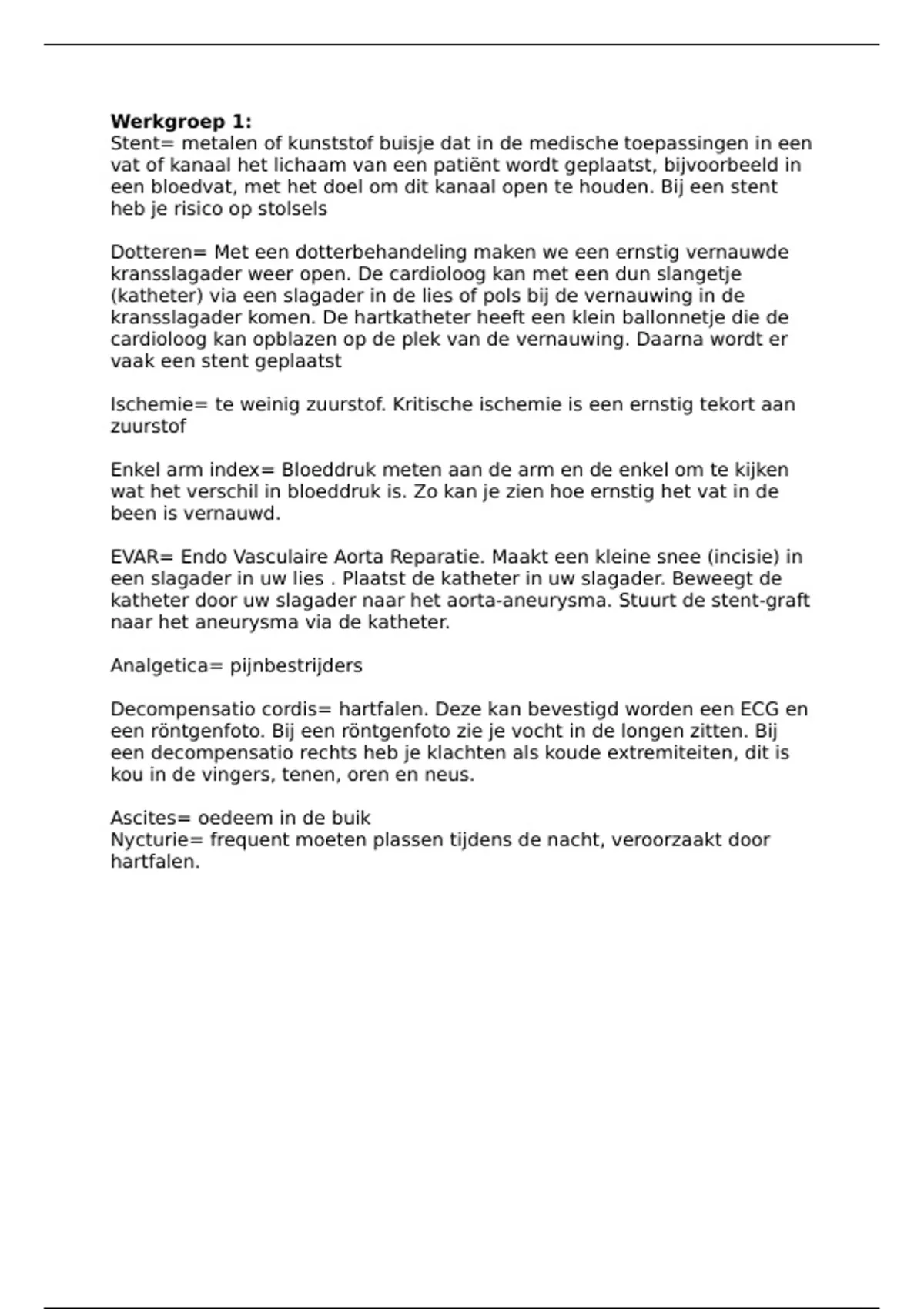 EVAR= Endo Vasculaire Aorta Reparatie. Maakt een kleine snee (incisie) in