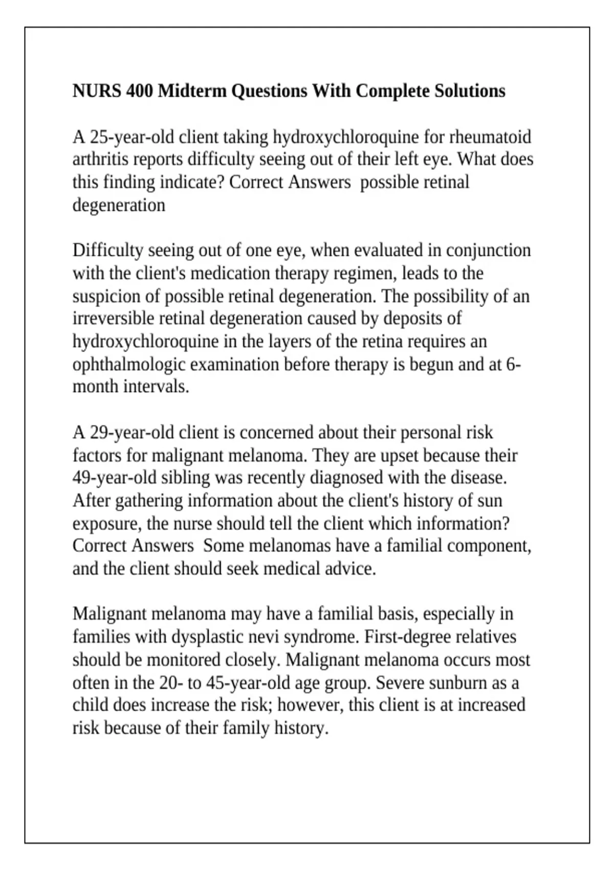 NURS 400 Midterm Questions With Complete Solutions