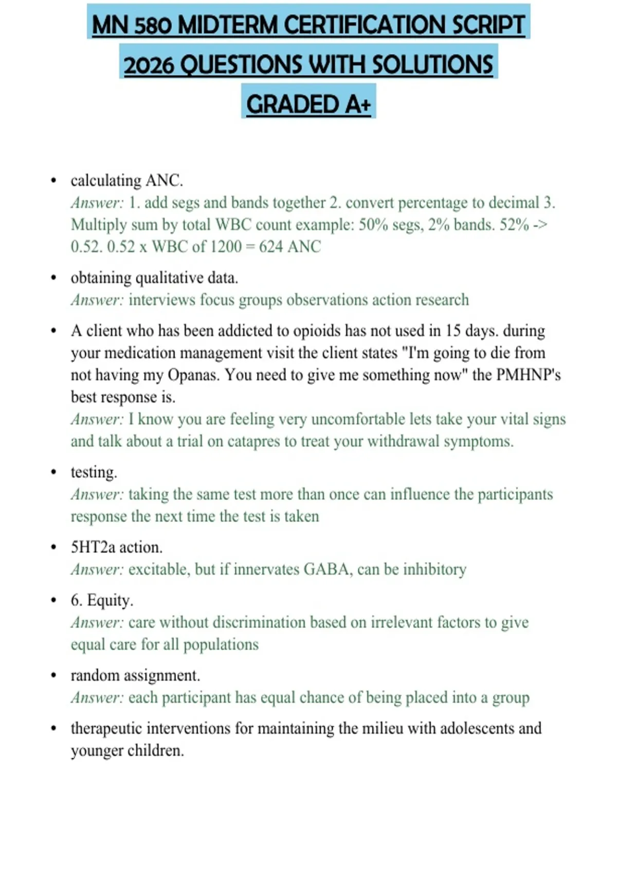 MN 580 MIDTERM CERTIFICATION SCRIPT 2026 QUESTIONS WITH SOLUTIONS GRADED A+