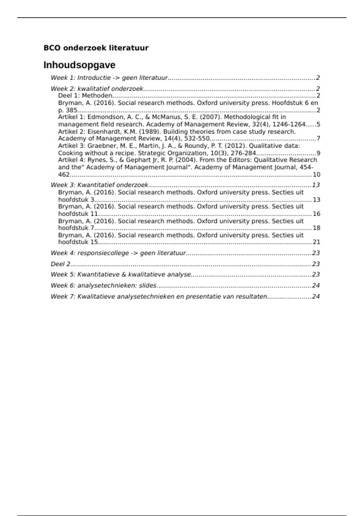 Bryman, A. (2016). Social research methods. Oxford university press. Secties uit
