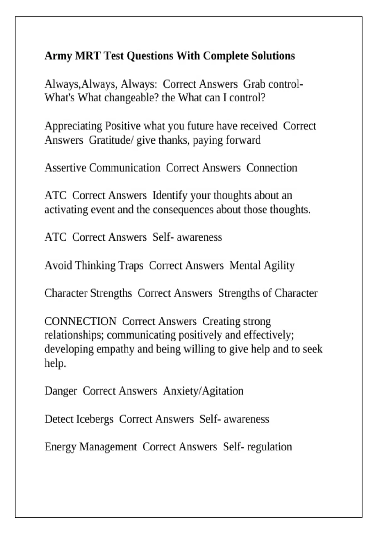 Army MRT Test Questions With Complete Solutions