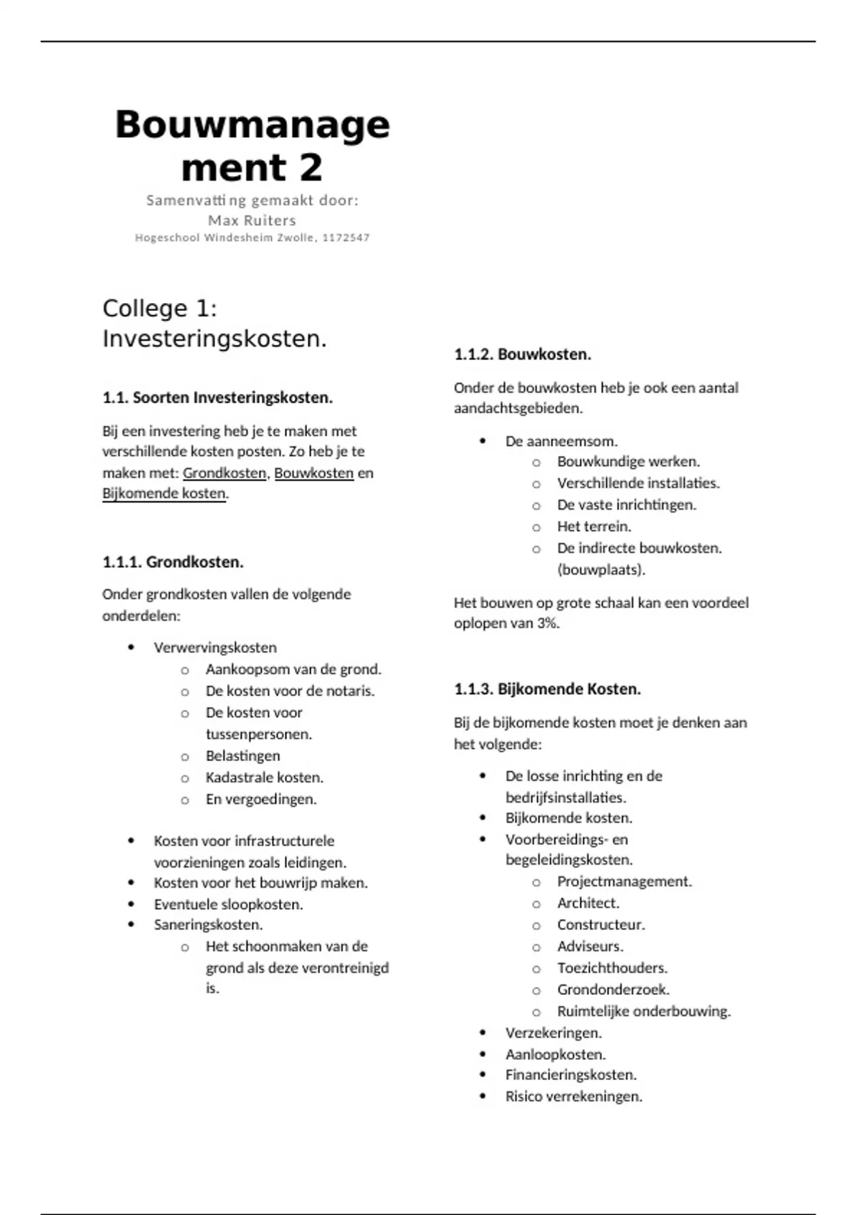 Kosten voor het bouwrijp maken. o Projectmanagement.