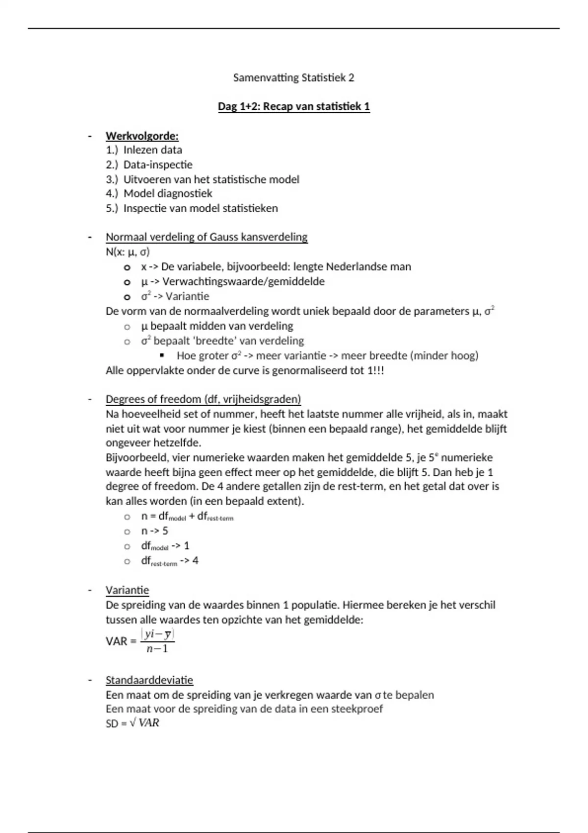 Dag 1+2: Recap van statistiek 1