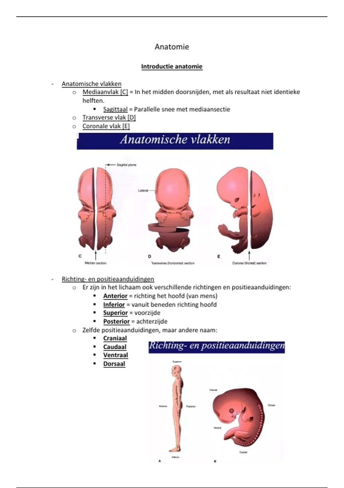▪ Anterior = richting het hoofd (van mens)