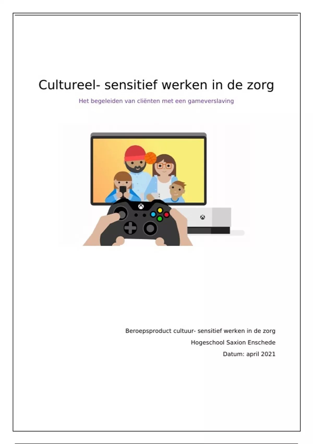 Voor u ligt het beroepsproduct voor het vak ‘Cultuursensitief werken in de zorg’.
