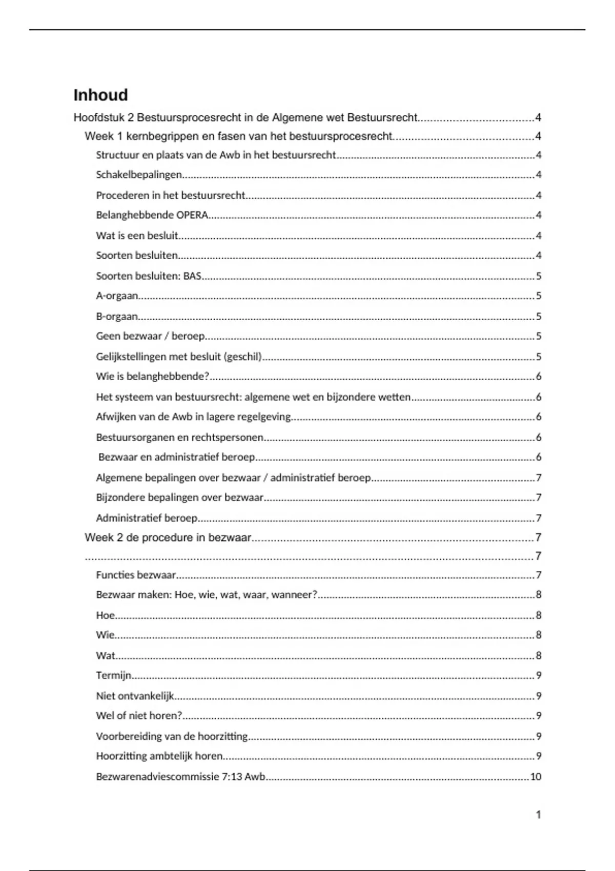 Deze samenvatting is een combinatie van sheets, aantekeningen, opdrachten en het boek. De volgende onderwerpen komen aan bod: Structuur en plaats aan in het bestuursrecht, bezwaar, kort geding, hoger beroep, bestuurlijke lus