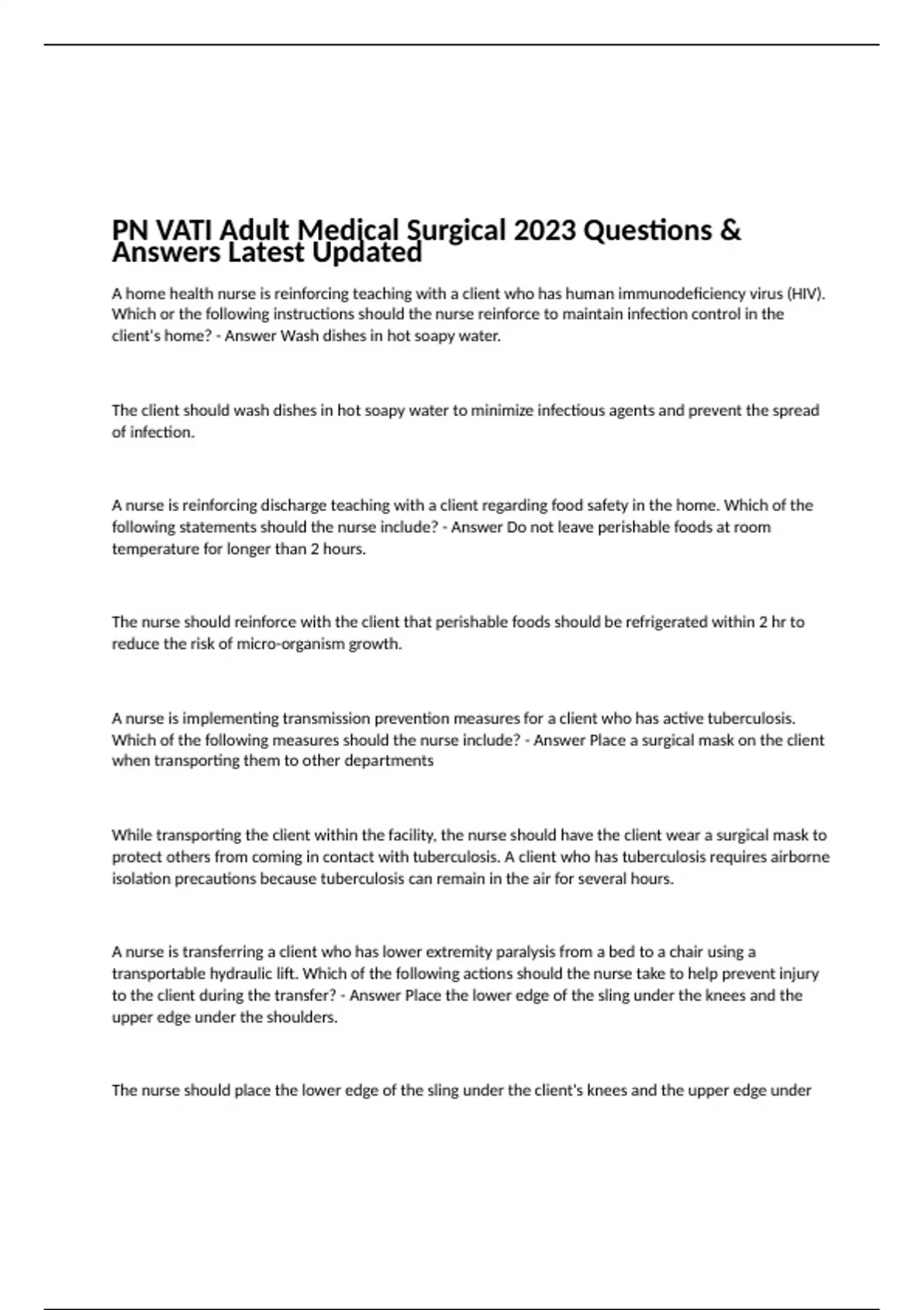 PN VATI Adult Medical Surgical 2023 Questions & Answers Latest Updated