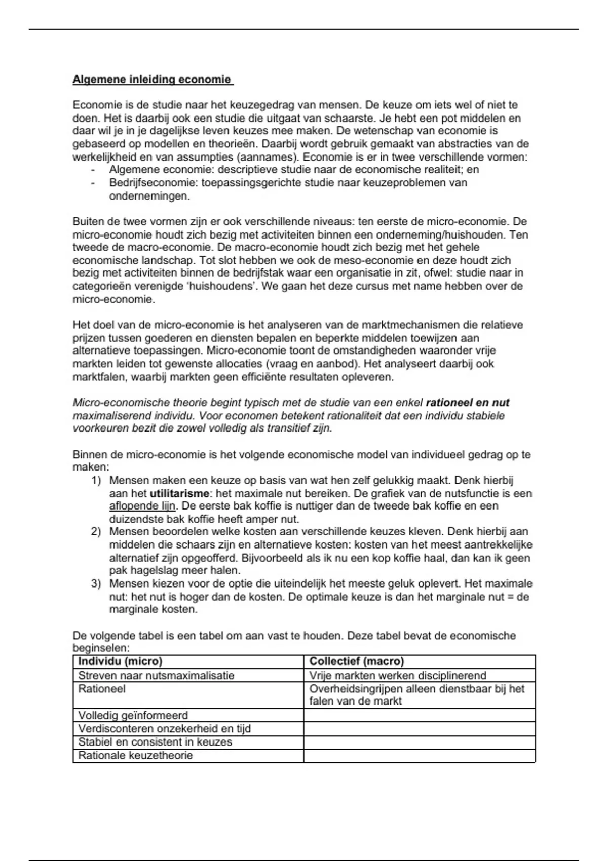nut: het nut is hoger dan de kosten. De optimale keuze is dan het marginale nut = de