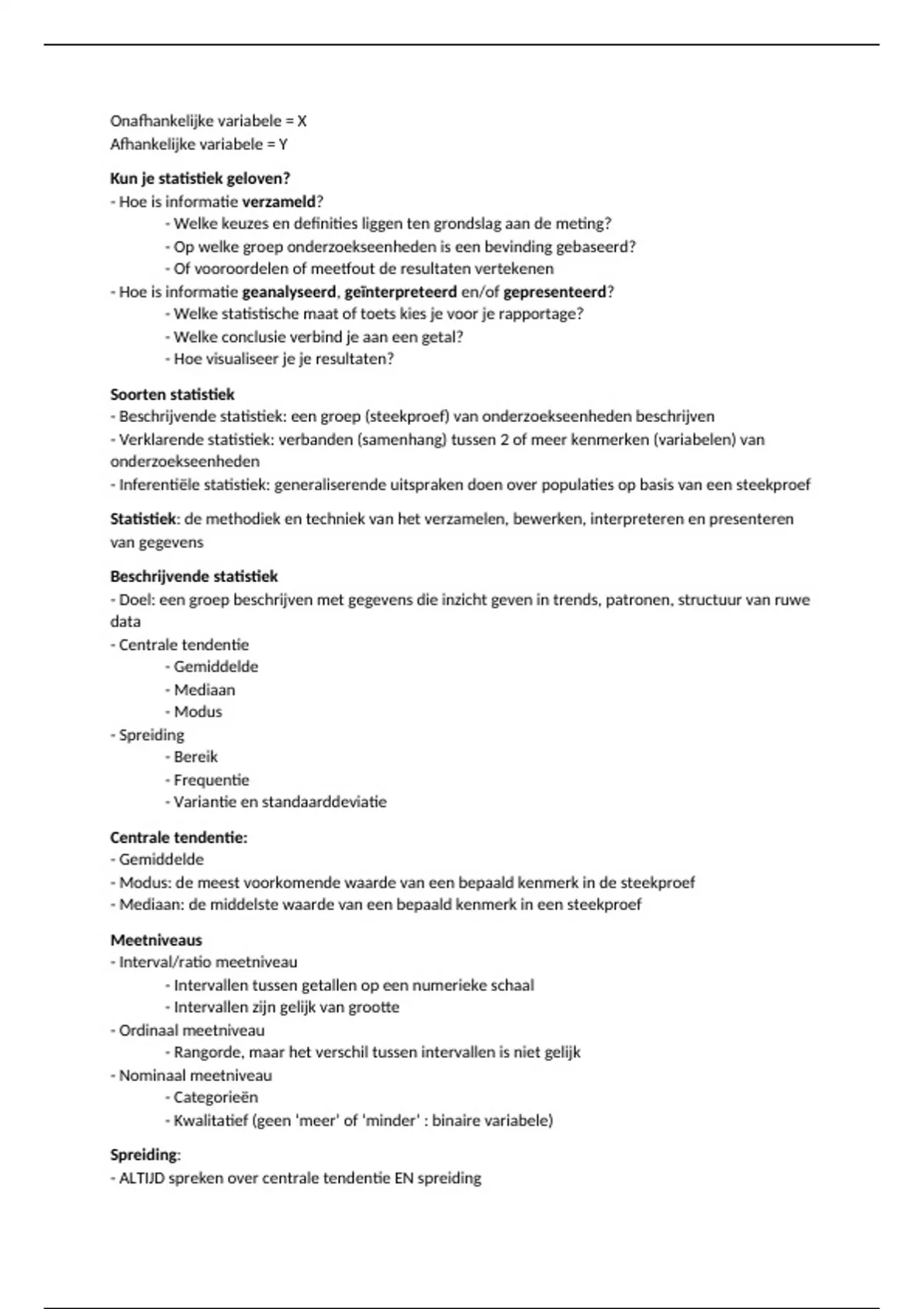 Samenvatting van alle stof voor het tentamen van Statistiek.