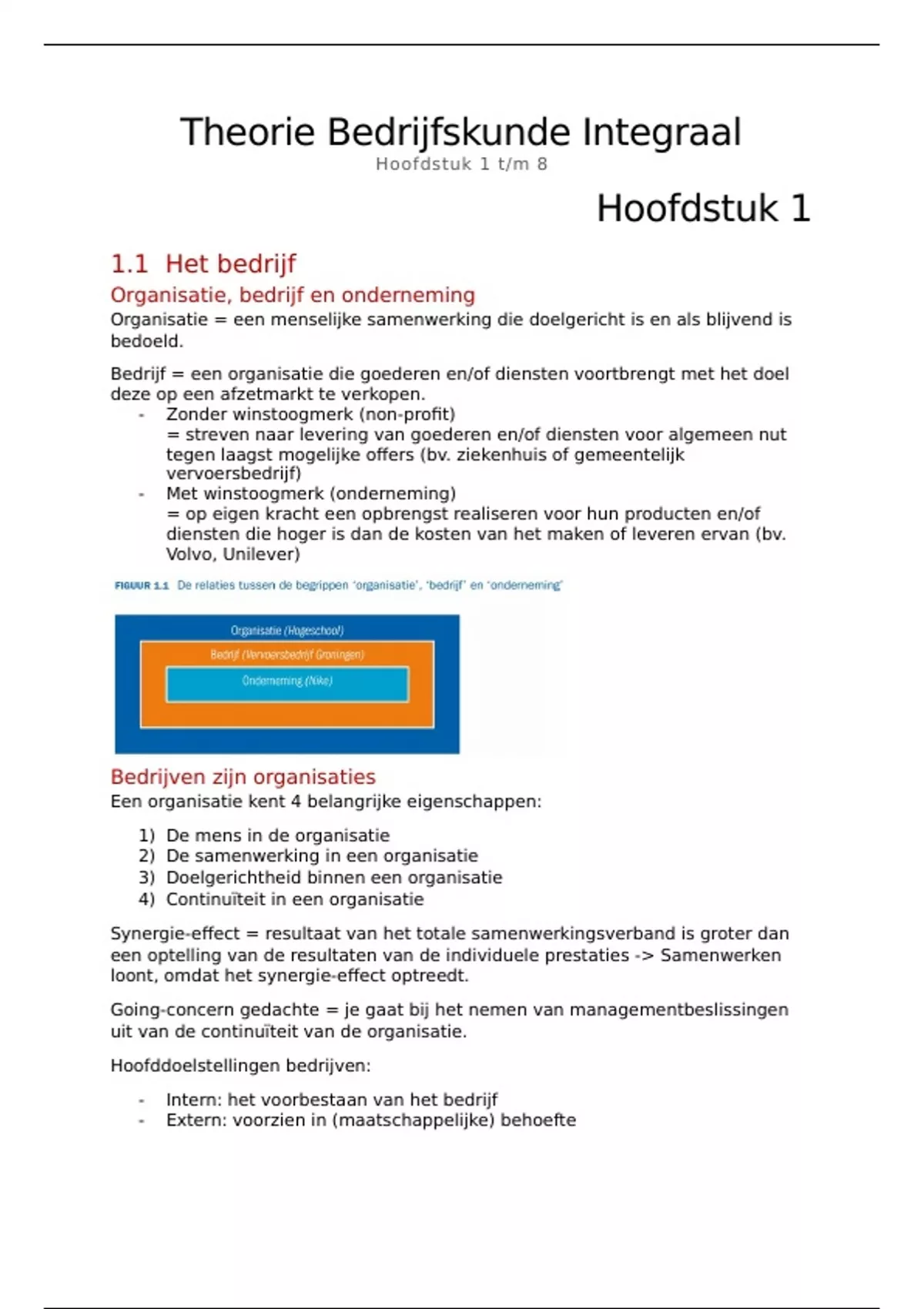 Samenvatting Bedrijfskunde Integraal - bedrijfskunde basis