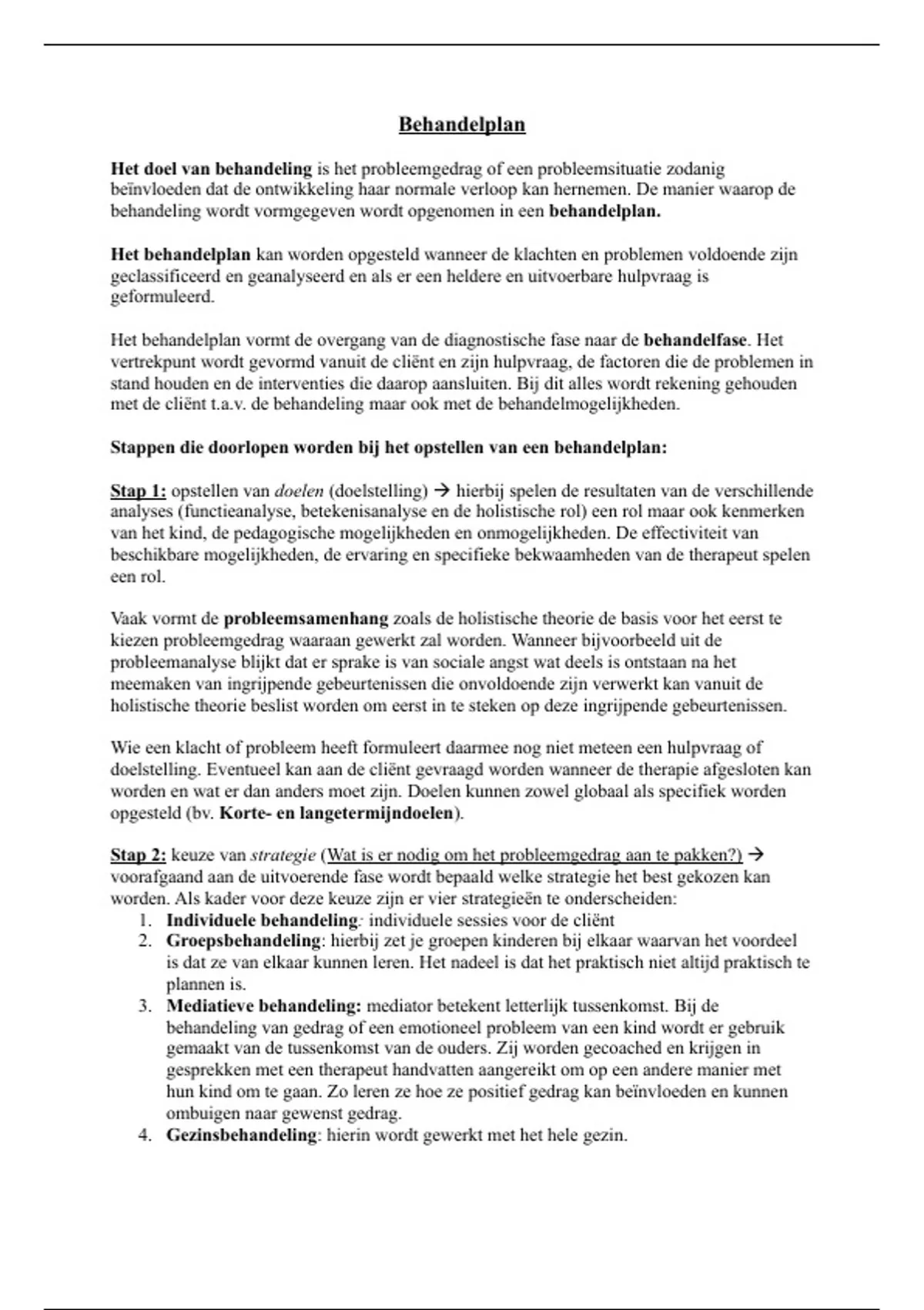 Stappen die doorlopen worden bij het opstellen van een behandelplan: