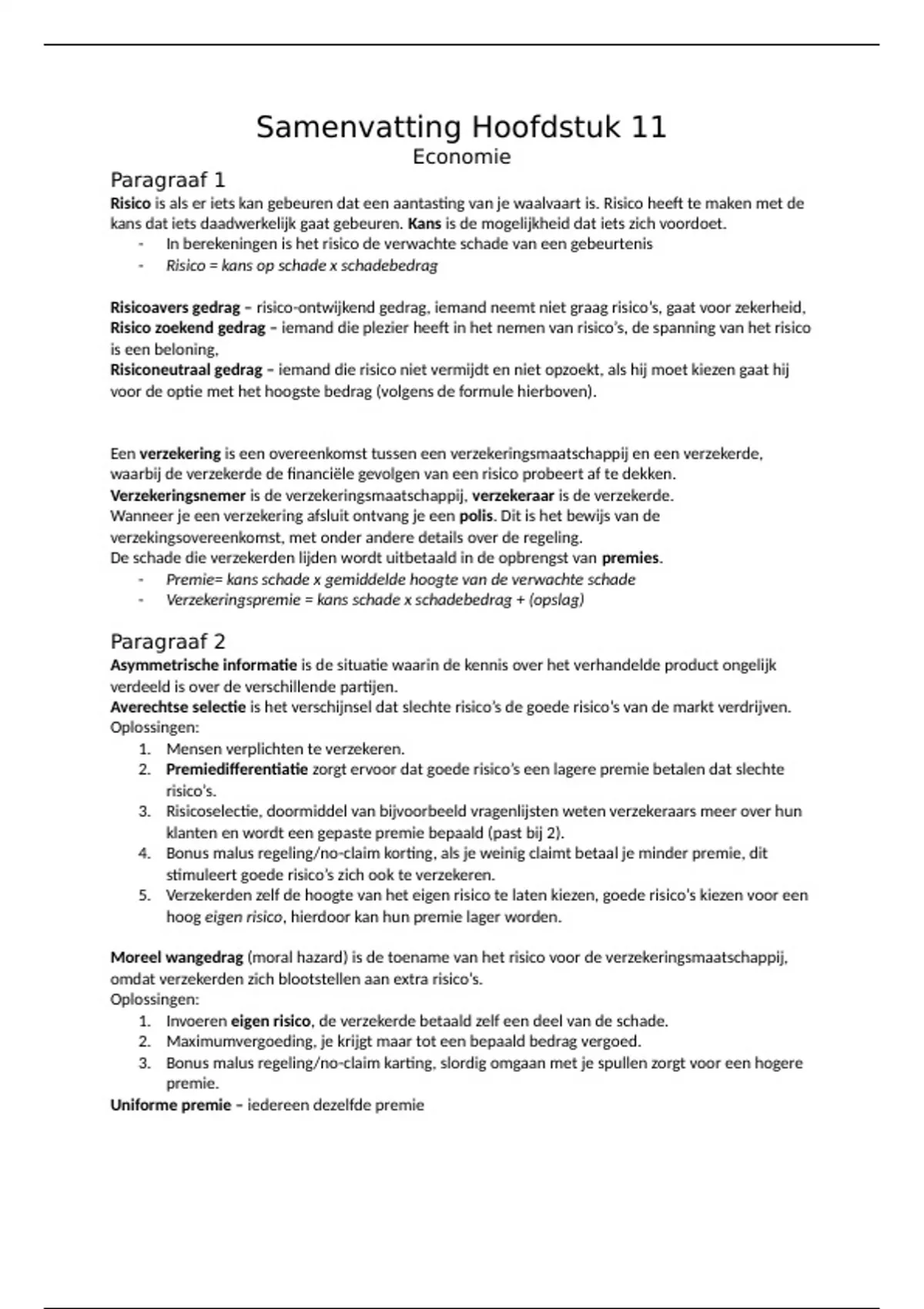 - Verzekeringspremie = kans schade x schadebedrag + (opslag)
