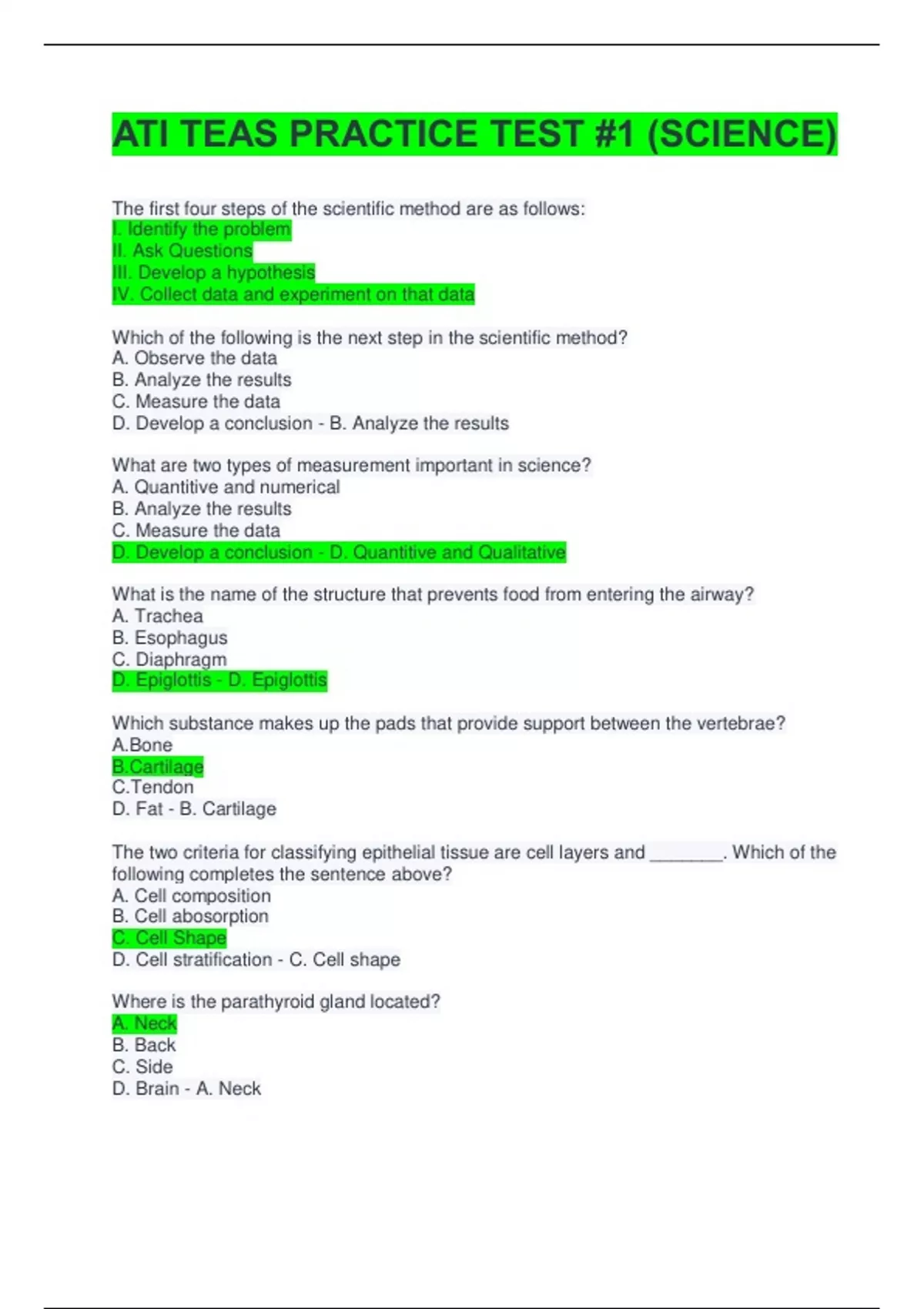 ATI TEAS PRACTICE TEST #1 (SCIENCE) TOP QUALITY RATED A