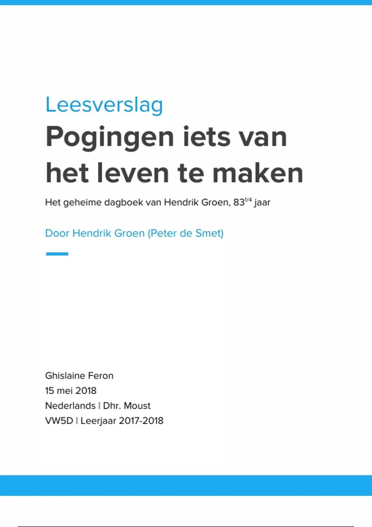 Door Hendrik Groen (Peter de Smet)