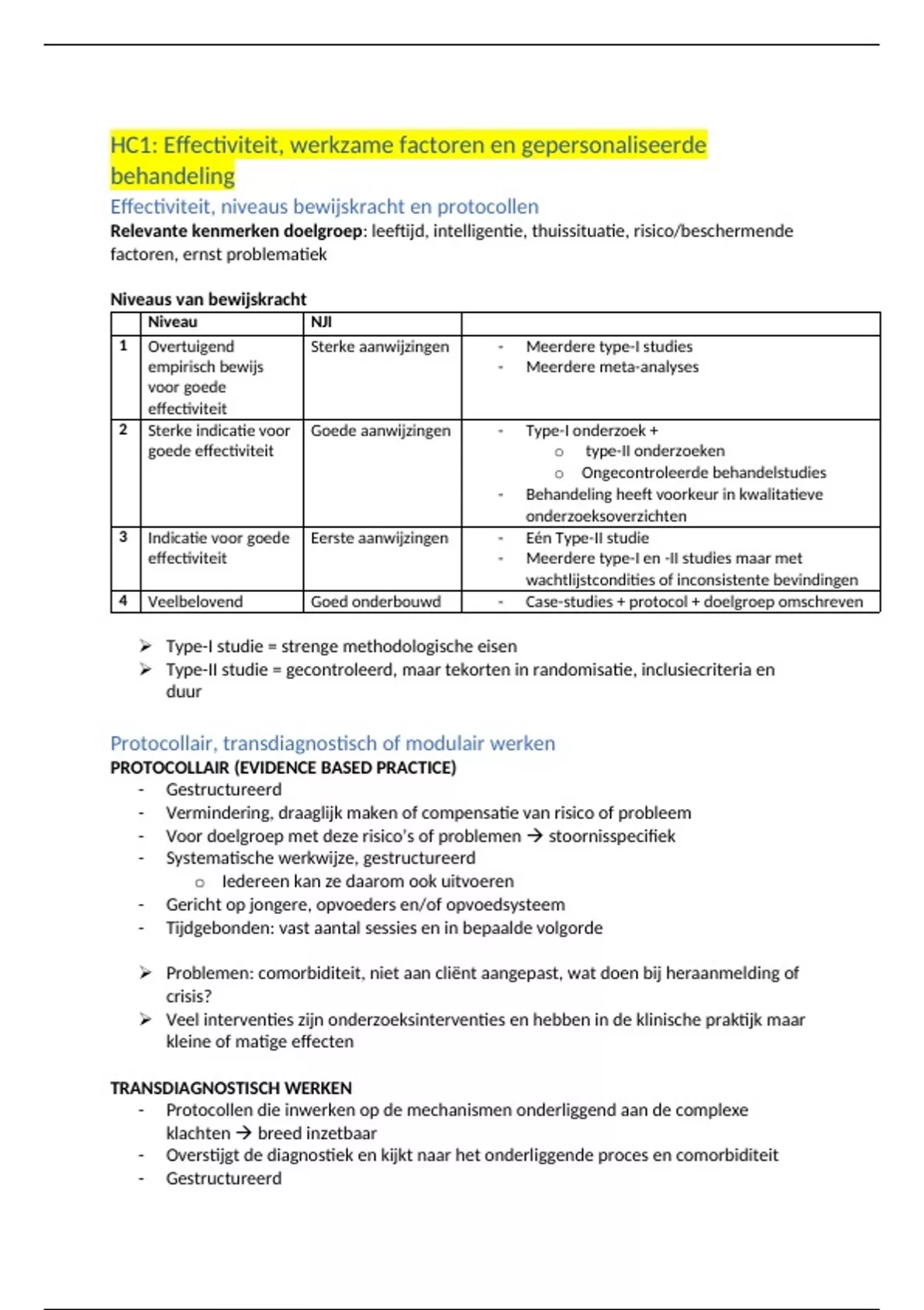 Beknopte en overzichtelijke samenvatting van de literatuur en colleges van het vak Evidence Based Interventies bij Kinderen en Adolescenten uit de master Klinische Ontwikkelingspsychologie aan de VU.
