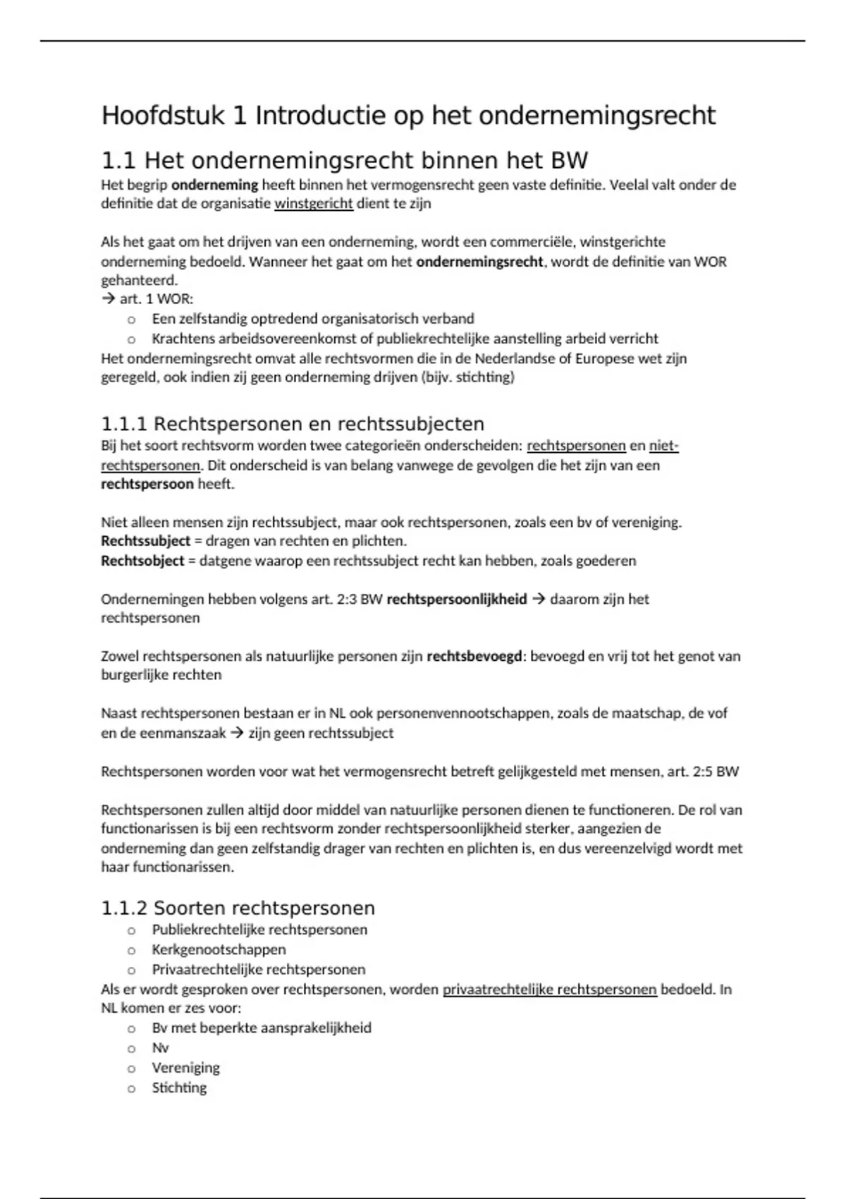 Hoofdstuk 1 Introductie op het ondernemingsrecht