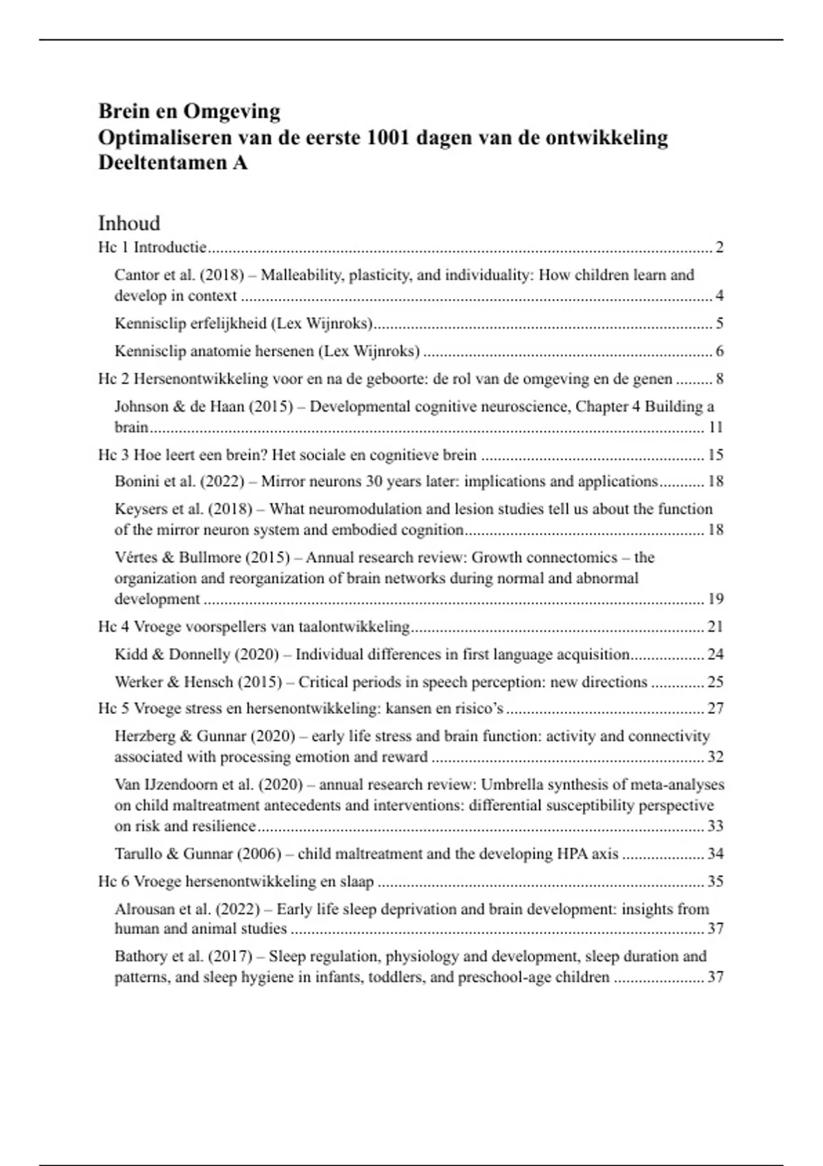Hc 6 Vroege hersenontwikkeling en slaap ............................................................................... 35