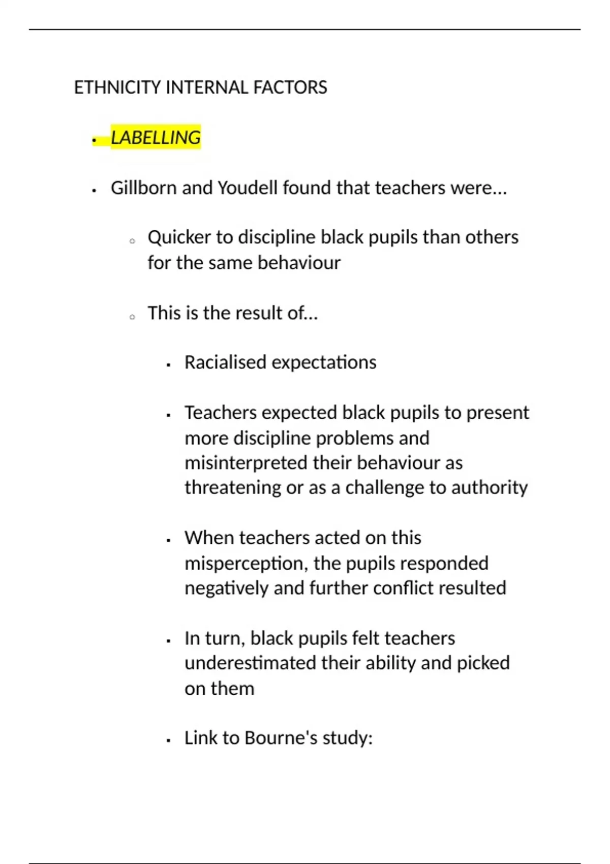 Summary A Level AQA Sociology- Education (Ethnicity Internal factors)
