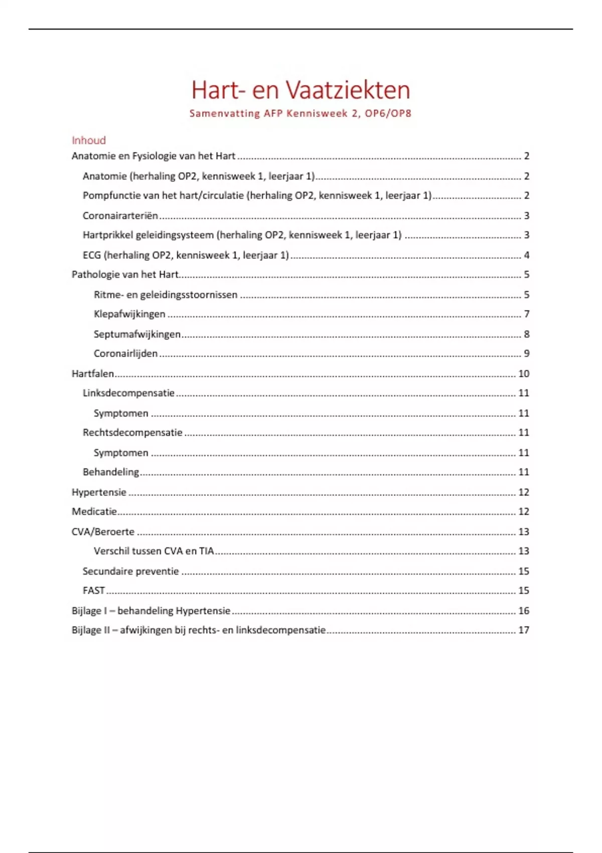 Samenvatting AFP, Hart- en Vaatziekten, Kennisweek 2, OP6/OP8, jaar 2 (OVK2TKKO02)