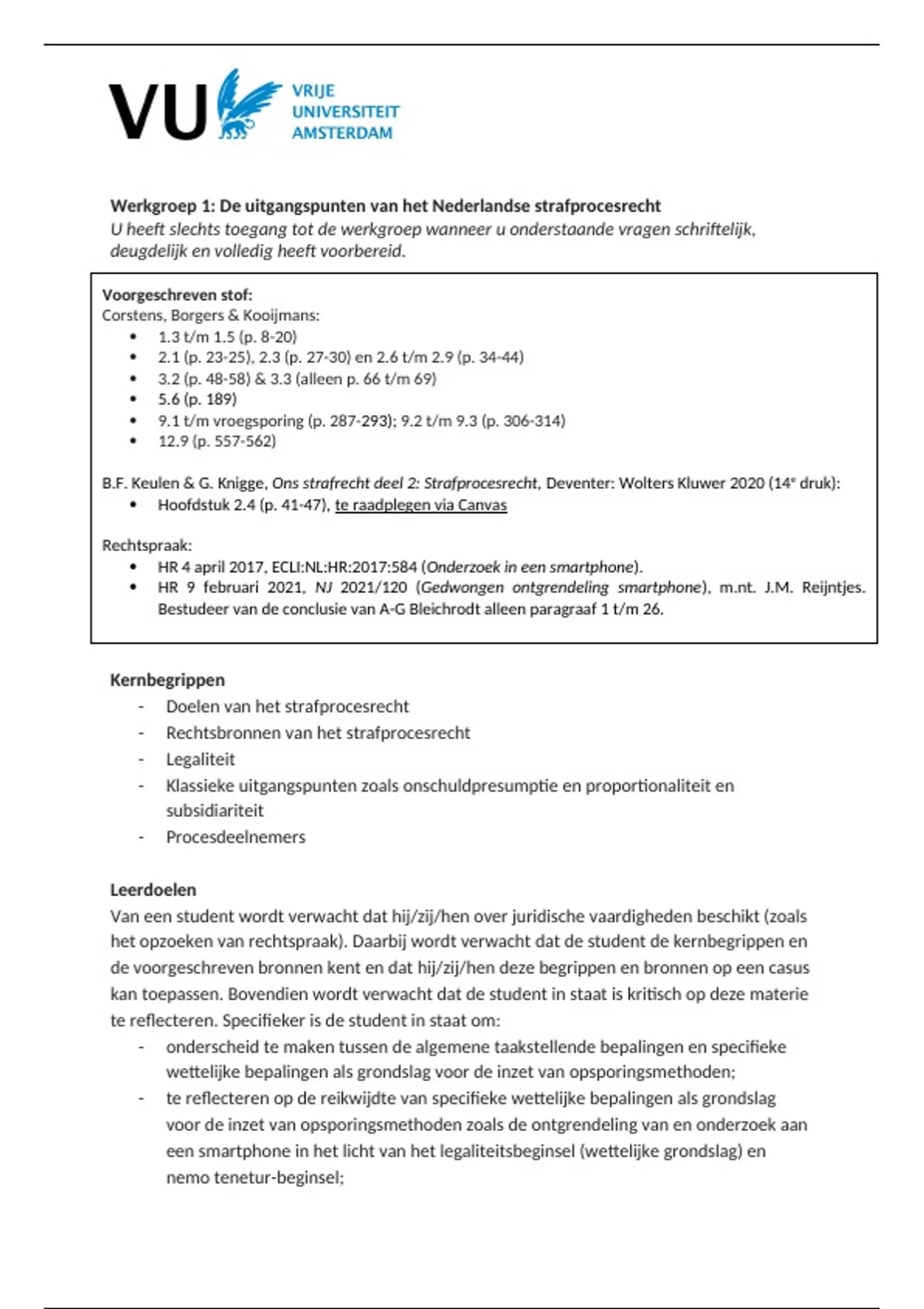 het opzoeken van rechtspraak). Daarbij wordt verwacht dat de student de kernbegrippen en