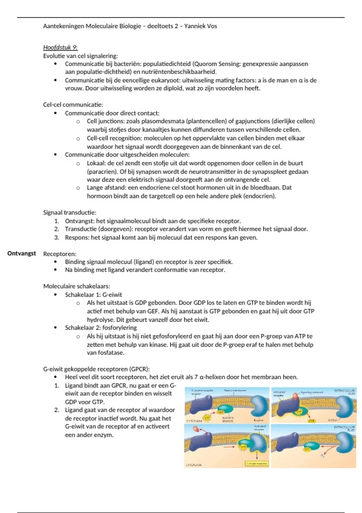 , Aantekeningen Moleculaire Biologie – deeltoets 2 – Yanniek Vos