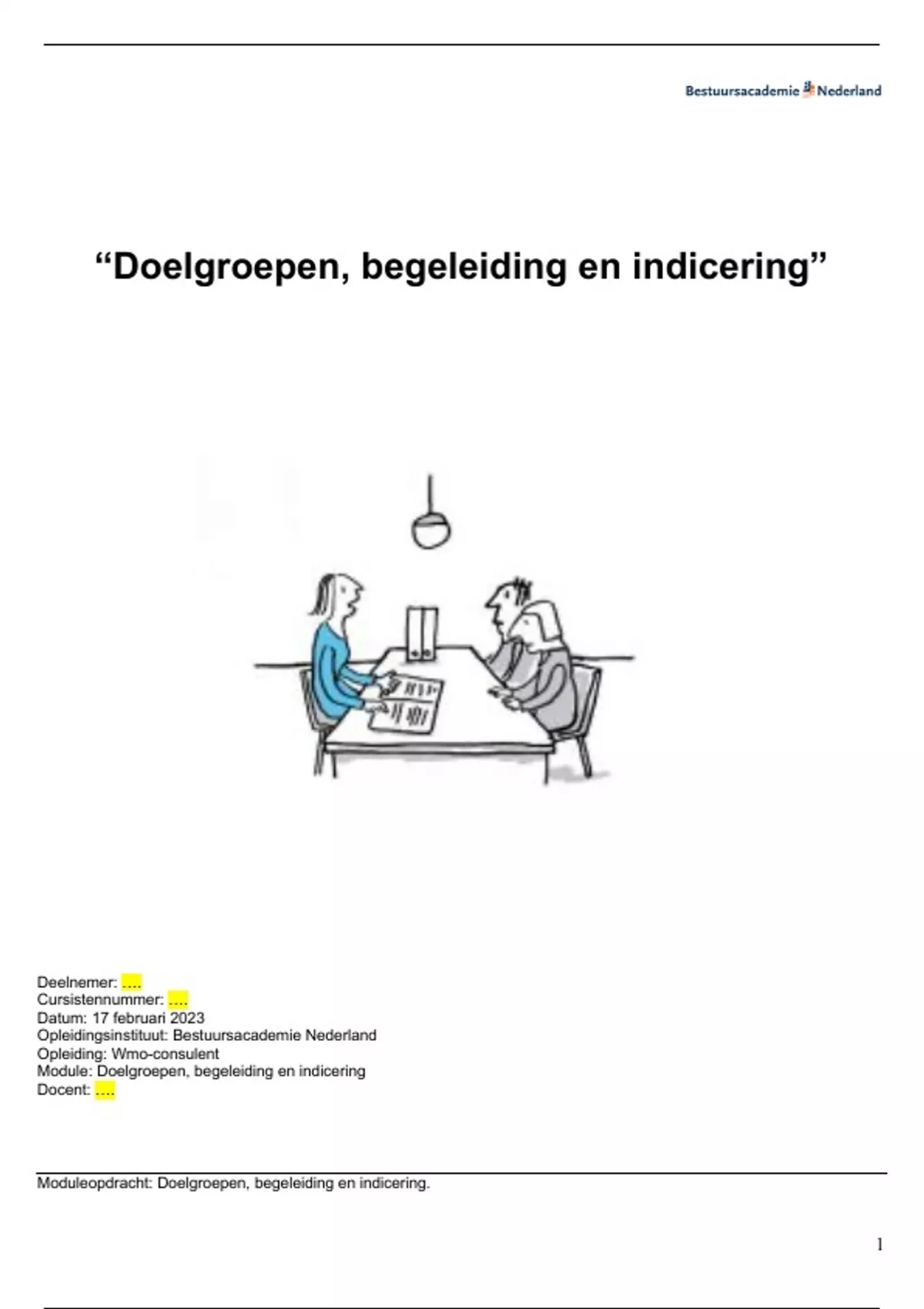 Moduleopdracht: Doelgroepen, begeleiding en indicering.