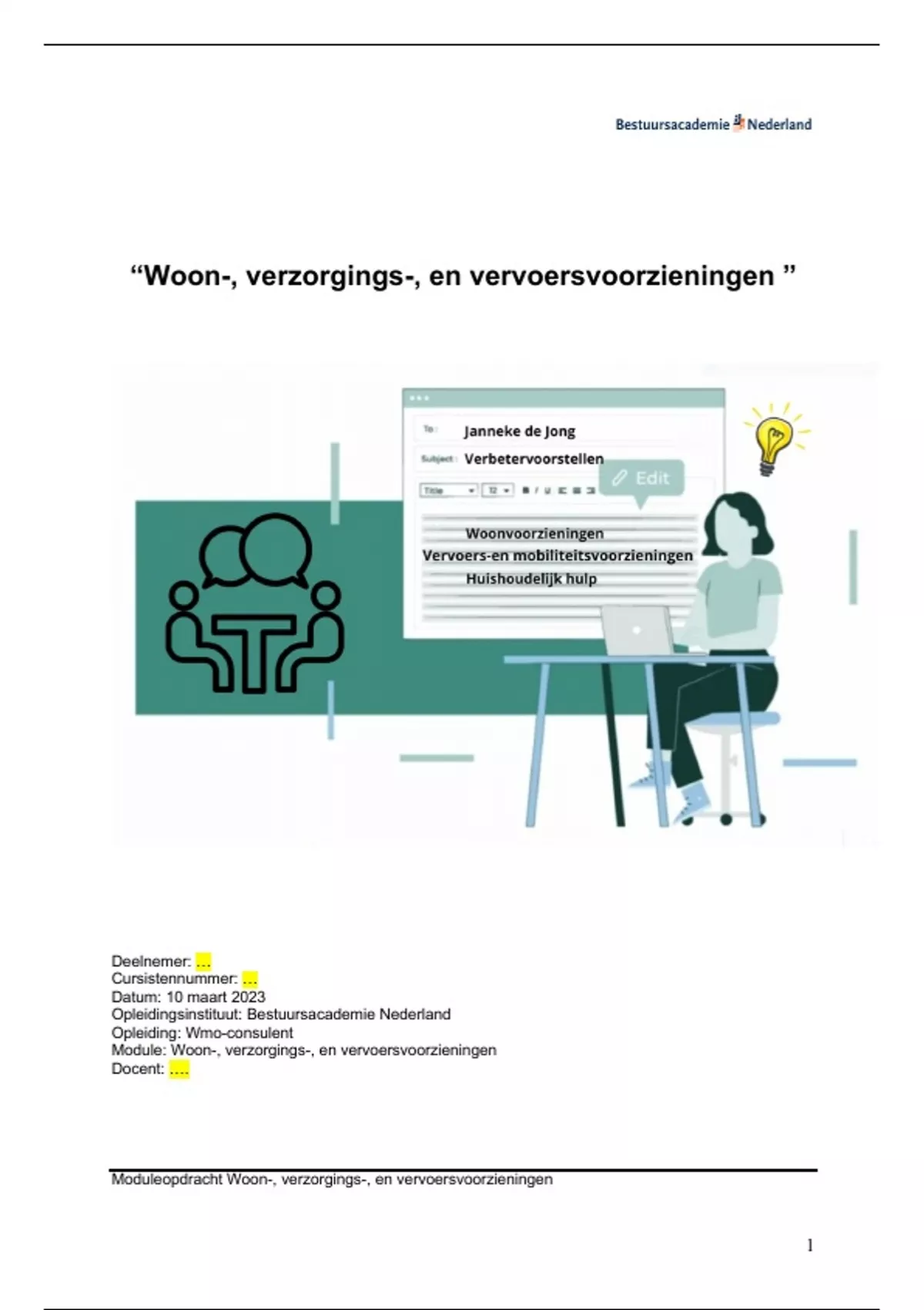 moduleopdracht “Woon-, verzorgings-, en vervoersvoorzieningen” schrijf ik voor mijn manager ….