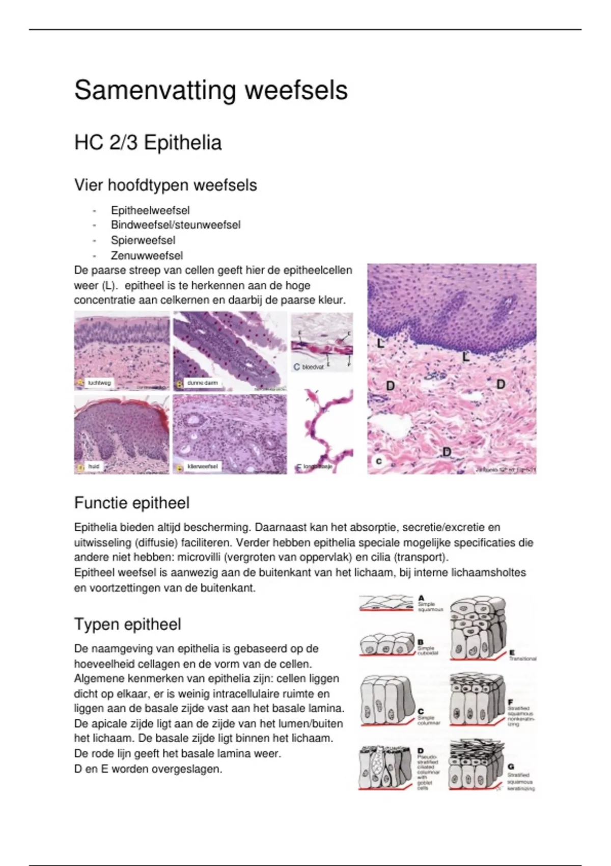uitwisseling (diffusie) faciliteren. Verder hebben epithelia speciale mogelijke specificaties die