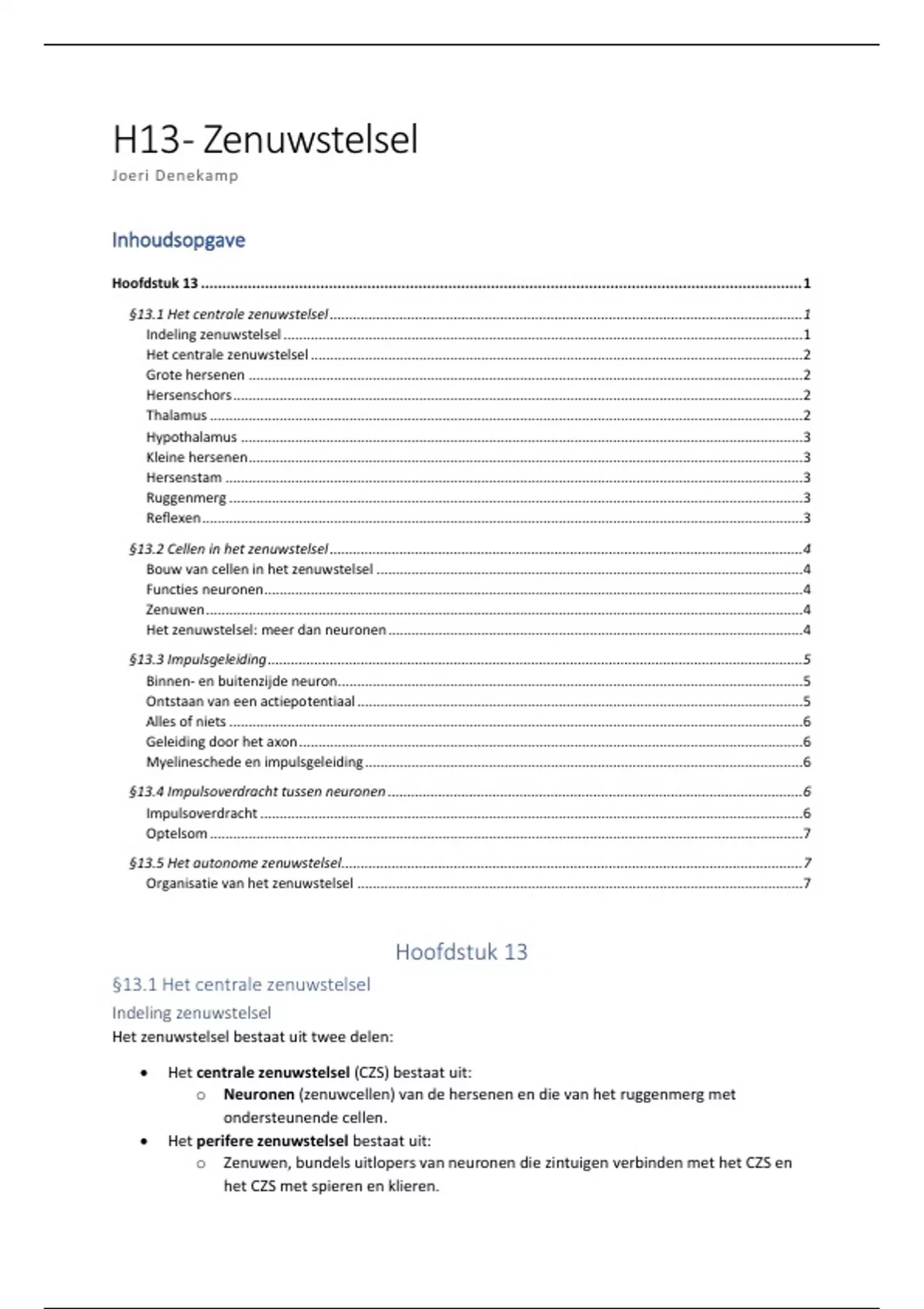 Hier is een volledige samenvatting over hoofdstuk 13 ''Zenuwstelsel'' voor het vwo Biologie.