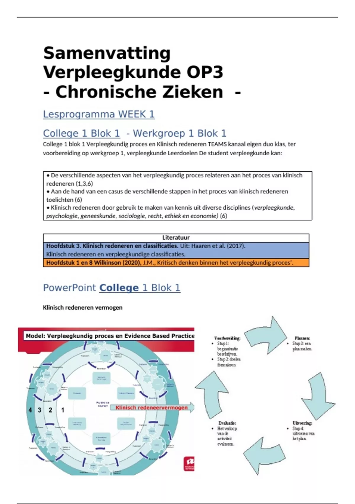 College 1 blok 1 Verpleegkundig proces en Klinisch redeneren TEAMS kanaal eigen duo klas, ter